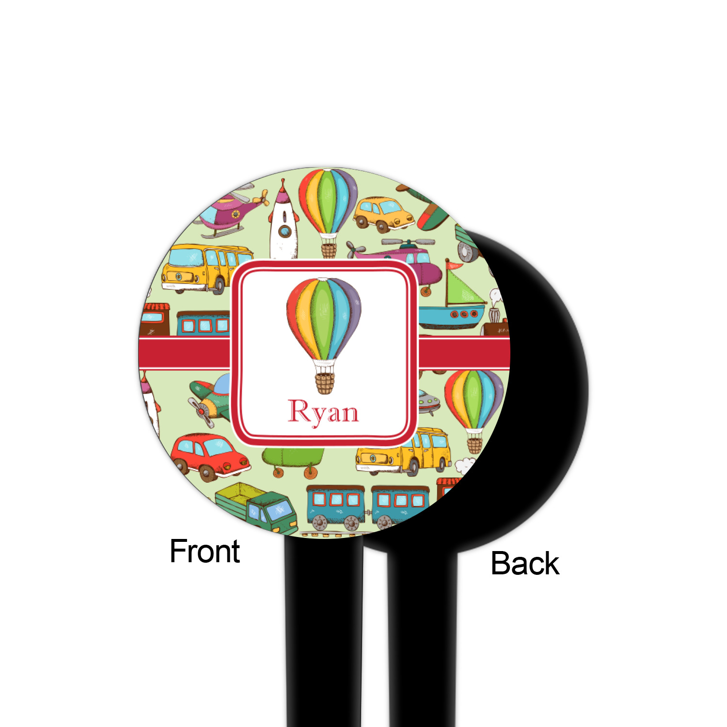 Trucks Designs for 4" Round Plastic Food Picks - Black - Single-Sided