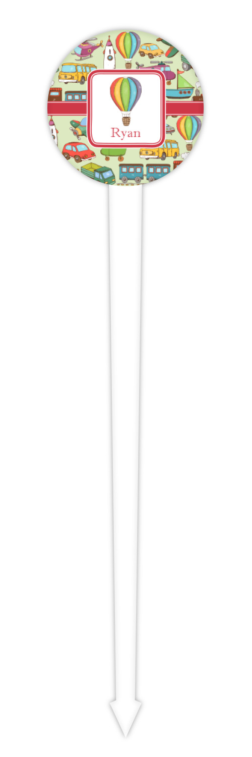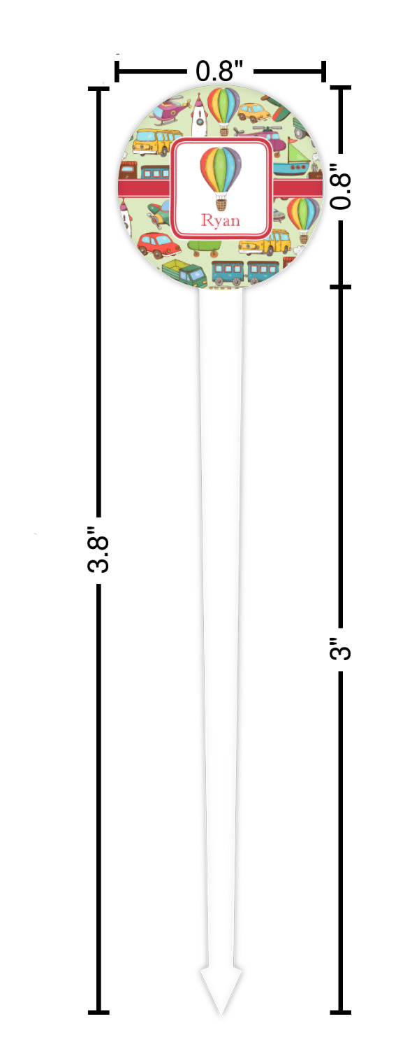 Trucks Designs for 4" Round Plastic Food Picks - White - Single-Sided