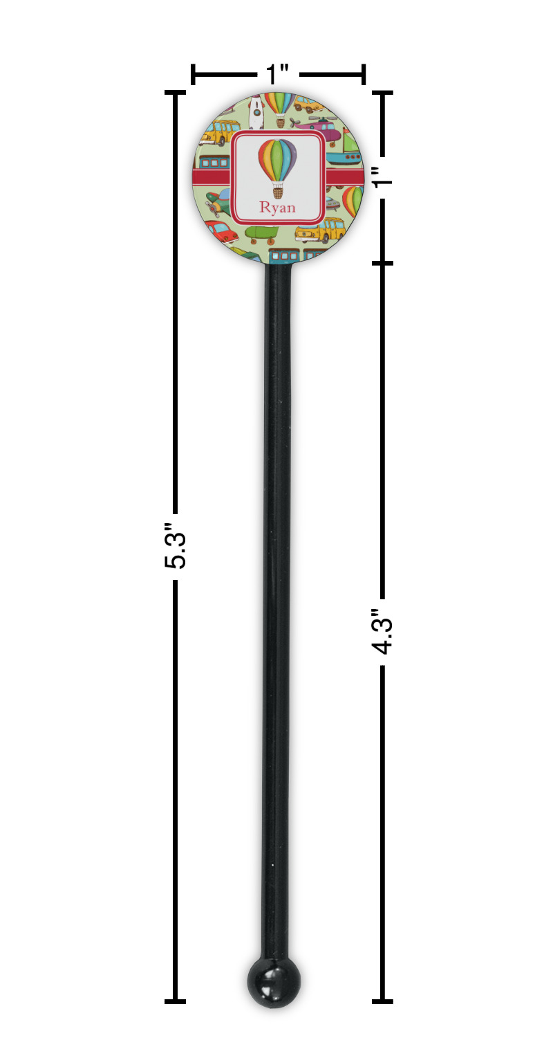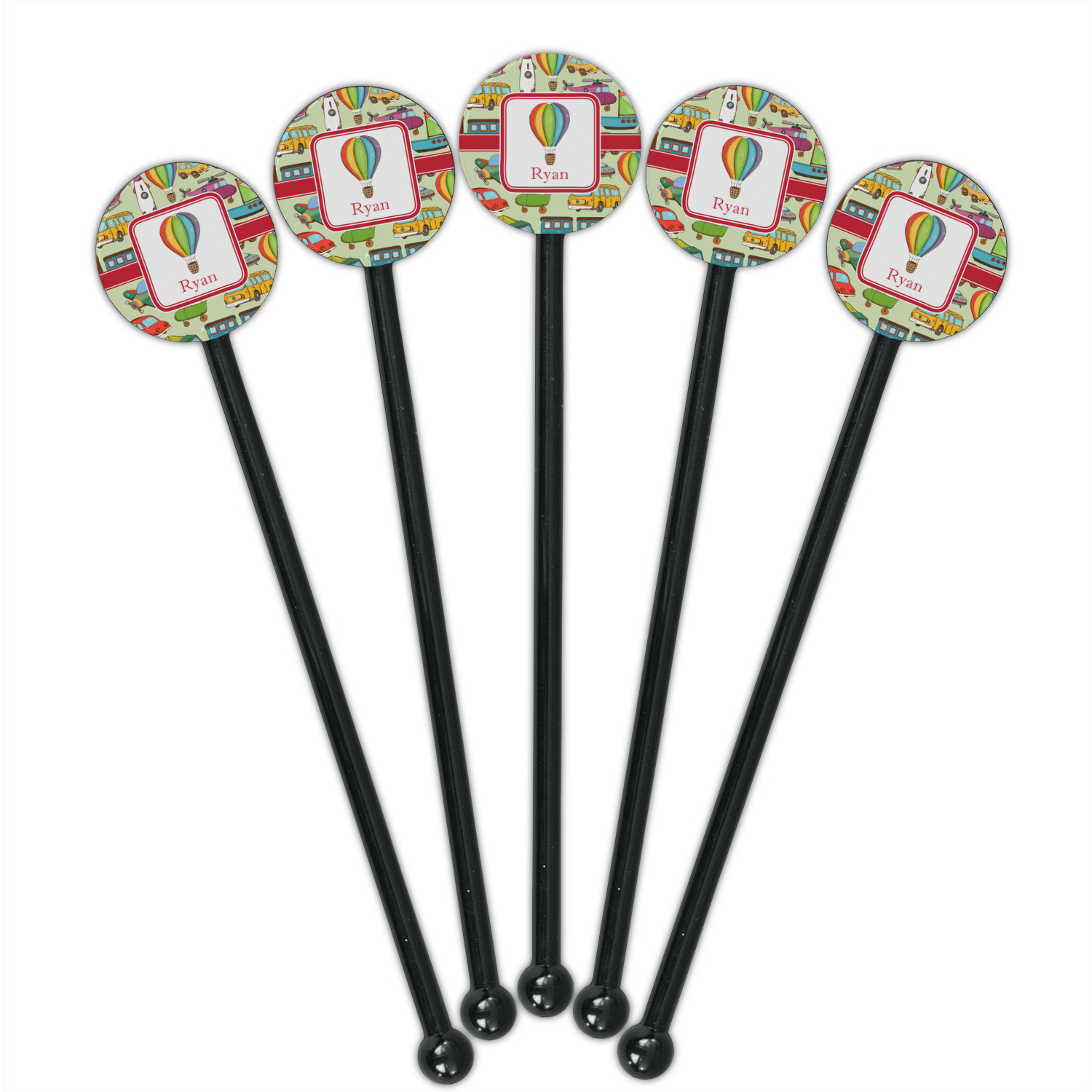 Aviation Designs for 5.5" Round Plastic Stir Sticks - Black - Single-Sided