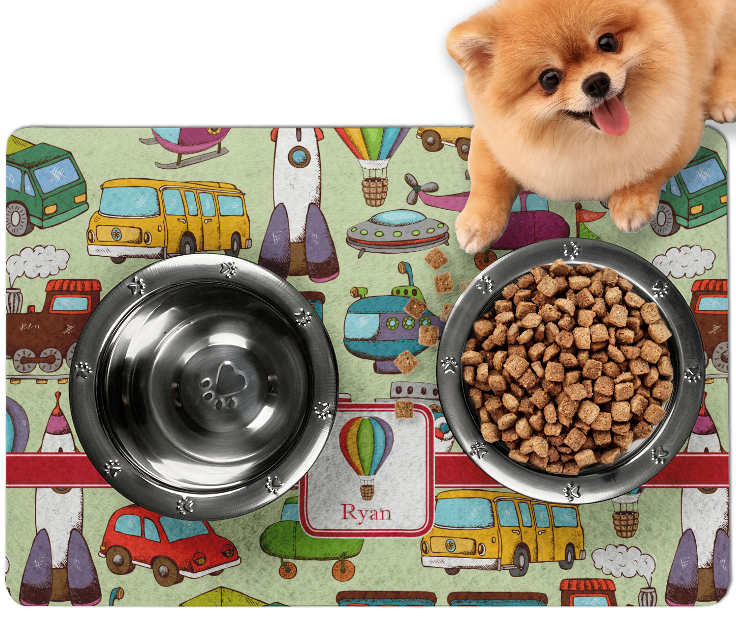 This dog bowl mat, fabricated from polyester, proudly displays your customized design on its top, while its bottom includes a non-slip rubber. This feature allows it to remain firmly in place, even when your dog spills his/her water. With 3 sizes available (18" x 12", 24" x 18", 30" x 24"), the pet food mat has ample space for both a food and water bowl for any sized dogs. Though specified for dogs' use, these mats are also a splendid option for cats.