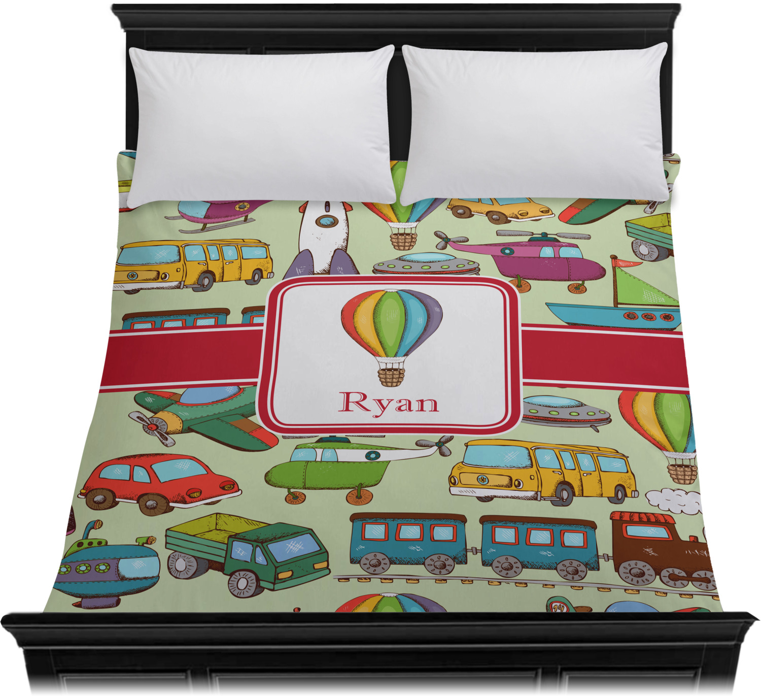 Yearning for the days gone by? The simpler times? Our vintage transportation will take you back in time. Using soft colors to highlight vintage hand drawn planes, trains, automobiles, and even a wonderful hot air balloon this design will put you at ease and take you back to your childhood.