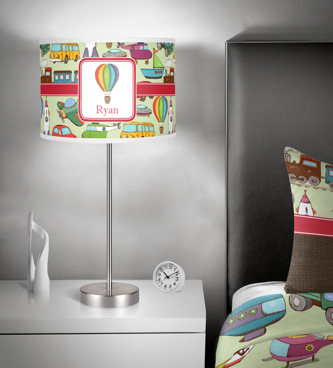 We have featured the various forms of transportation on a soft green background, with a classic red ribbon and square label. The label features a vintage hot air, along with a name for personalization.