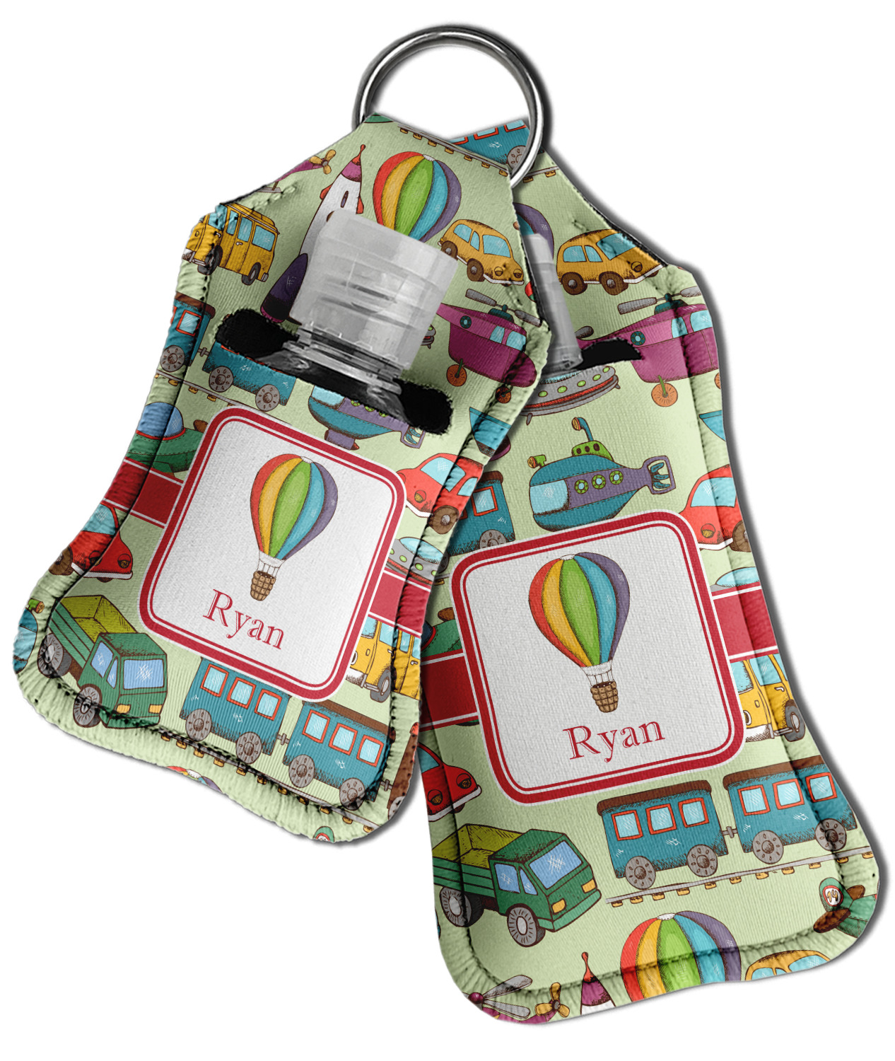 Each hand sanitizer holder comes with its own empty travel-sized, refillable hand sanitizer sure to fit snug in your customized sanitizer case! Our hand sanitizer cases are a durable, yet soft neoprene material sure to last any daily activities or travel agenda. Customize and personalize a hand sanitizer bottle holder with one of our two sizes - small (4.25" x 2.25") or large (5.5" x 2.5"). Each travel sanitizer holder comes with a keyring for attachment on bags, keys, or more!