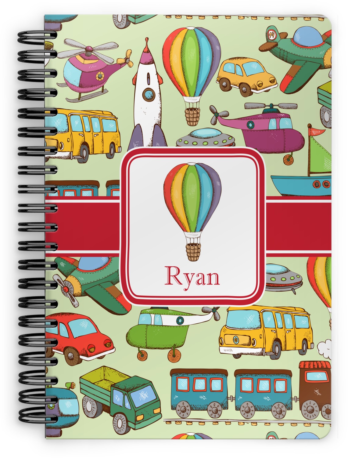This spiral notebook includes 75 sheets of thick, ruled paper. The front and back of this custom notebook is made of a robust, laminate, plastic covering. We print your personalization on these two panels, underneath a glossy finish, which emphasizes the colors of your design. The two panels and the sheets of paper are held together by a sturdy, black coil. The paper within your bound notebook is perforated for easy, clean tearing.