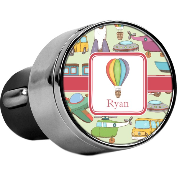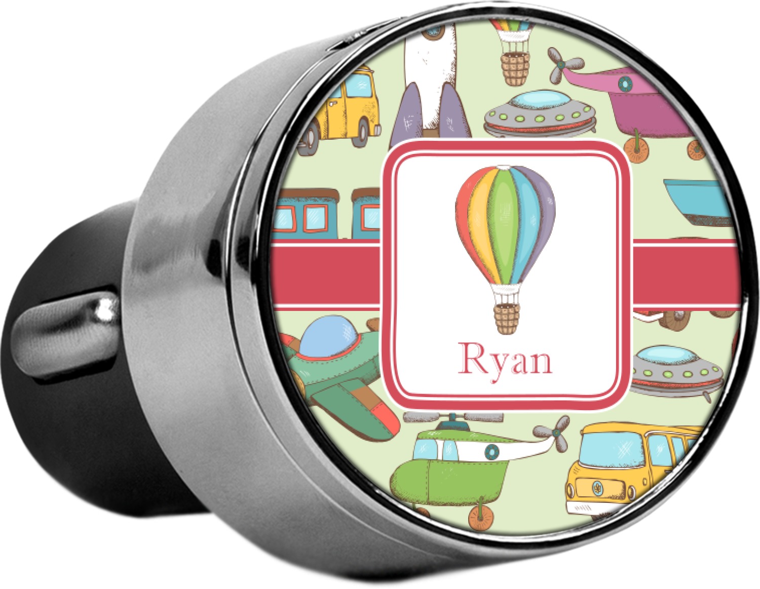 This car charger adapter converts your cars bland cigarette lighter into a decorative, personalized, and operational USB charging port. Made of solid, silver-plated metal, these chargers feature a flip-open lid that both displays your customized design and conceals two USB ports. The metal lid of the USB car charger adapter is 1.5" in diameter and seals due to a small, ingrained magnet on both the charger and its lid. The cigarette lighter insert, itself, is colored black.