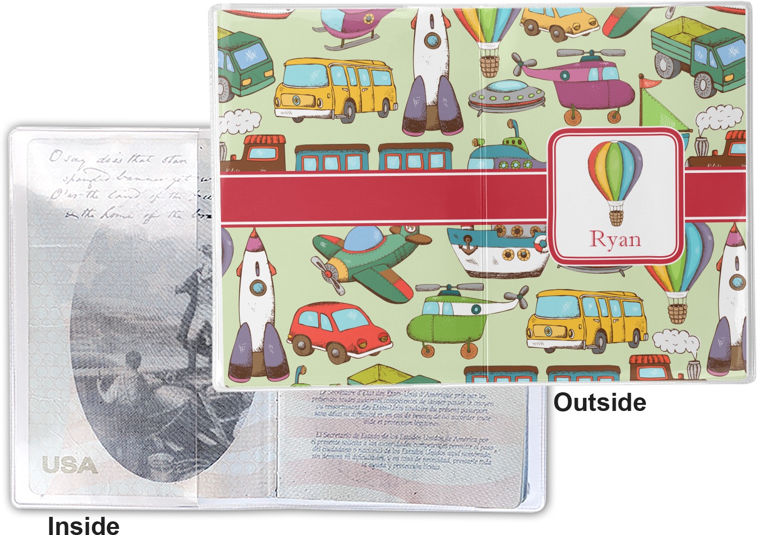 This cover is made of a sturdy clear vinyl with a personalized vinyl insert inside. There is a large and a small pocket on either side to hold the covers of your passport easily and firmly. The passport holder is approximately 7.5" x 5.25", the perfect size to snugly fit your passport. This slim cover is the perfect way to protect your passport without being one more bulky item you have to carry.