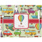 We have featured the various forms of transportation on a soft green background, with a classic red ribbon and square label. The label features a vintage hot air, along with a name for personalization.