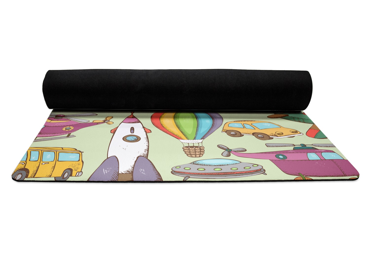 Yearning for the days gone by? The simpler times? Our vintage transportation will take you back in time. Using soft colors to highlight vintage hand drawn planes, trains, automobiles, and even a wonderful hot air balloon this design will put you at ease and take you back to your childhood.
