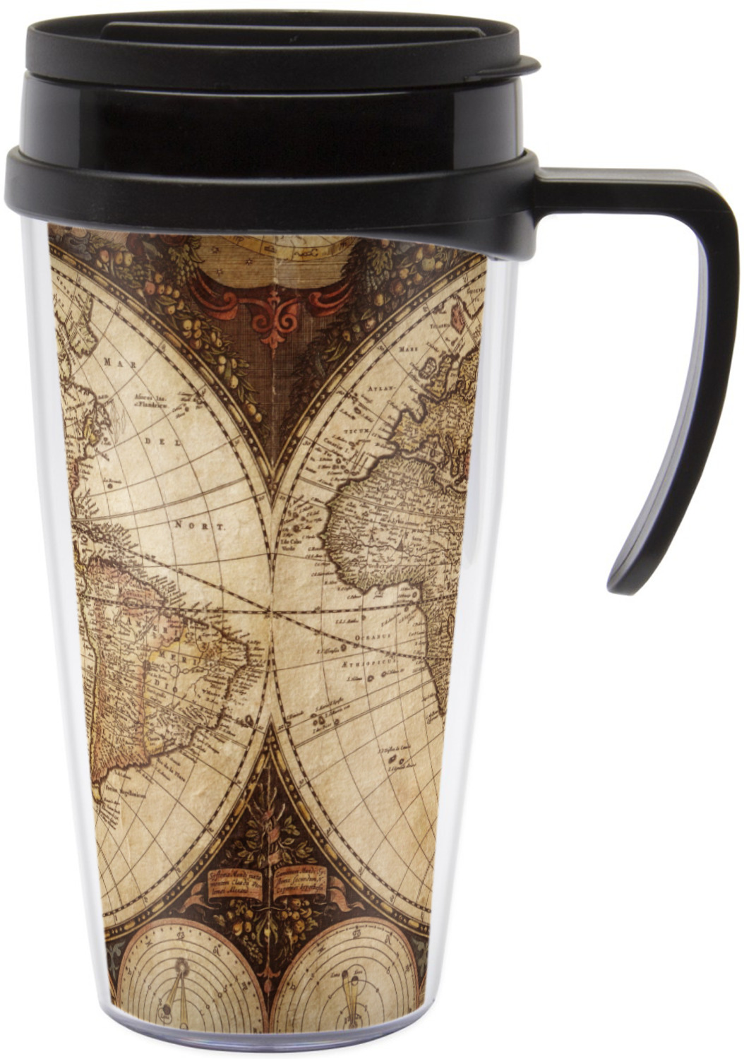 These thermal mugs are free of BPA, and insulated, to keep your drinks hot or cold. The black, snap on lid and the slider for sipping allows you to conveniently sip your drink without constantly worrying about a disastrous spill. We offer this mug with and without a handle, to better suit your needs. Each custom thermal mug holds up to 16 ounces of liquid and displays your customization on all sides on premium gloss media inserts.