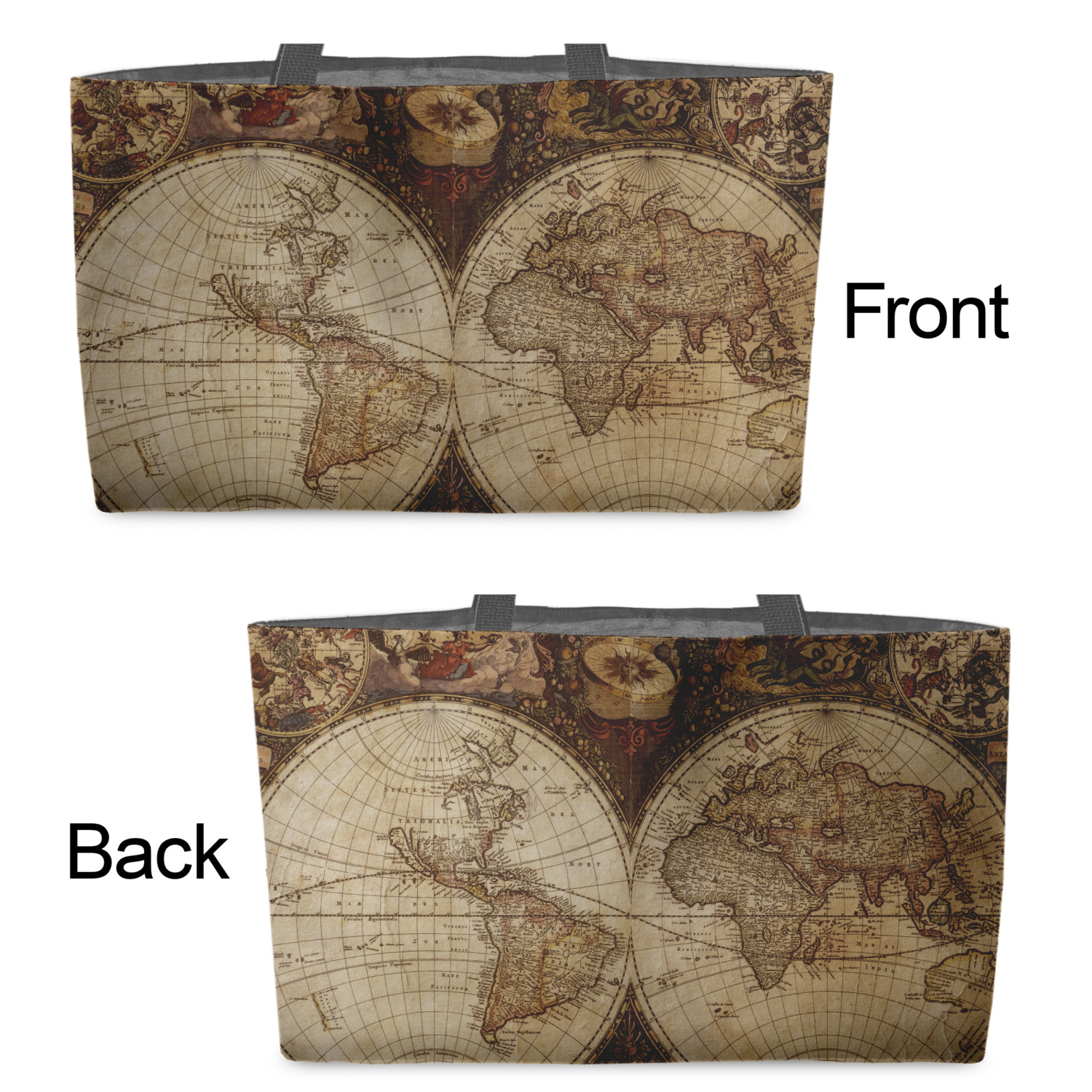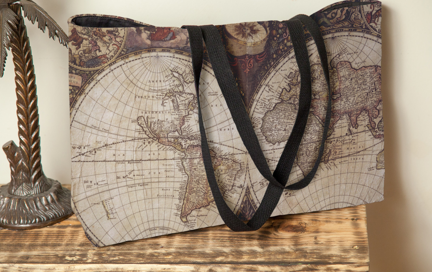 These beach totes are handmade here in the USA. Fabric is printed with your design. The tote is then sewn from the fabric pieces, lining and handles added.