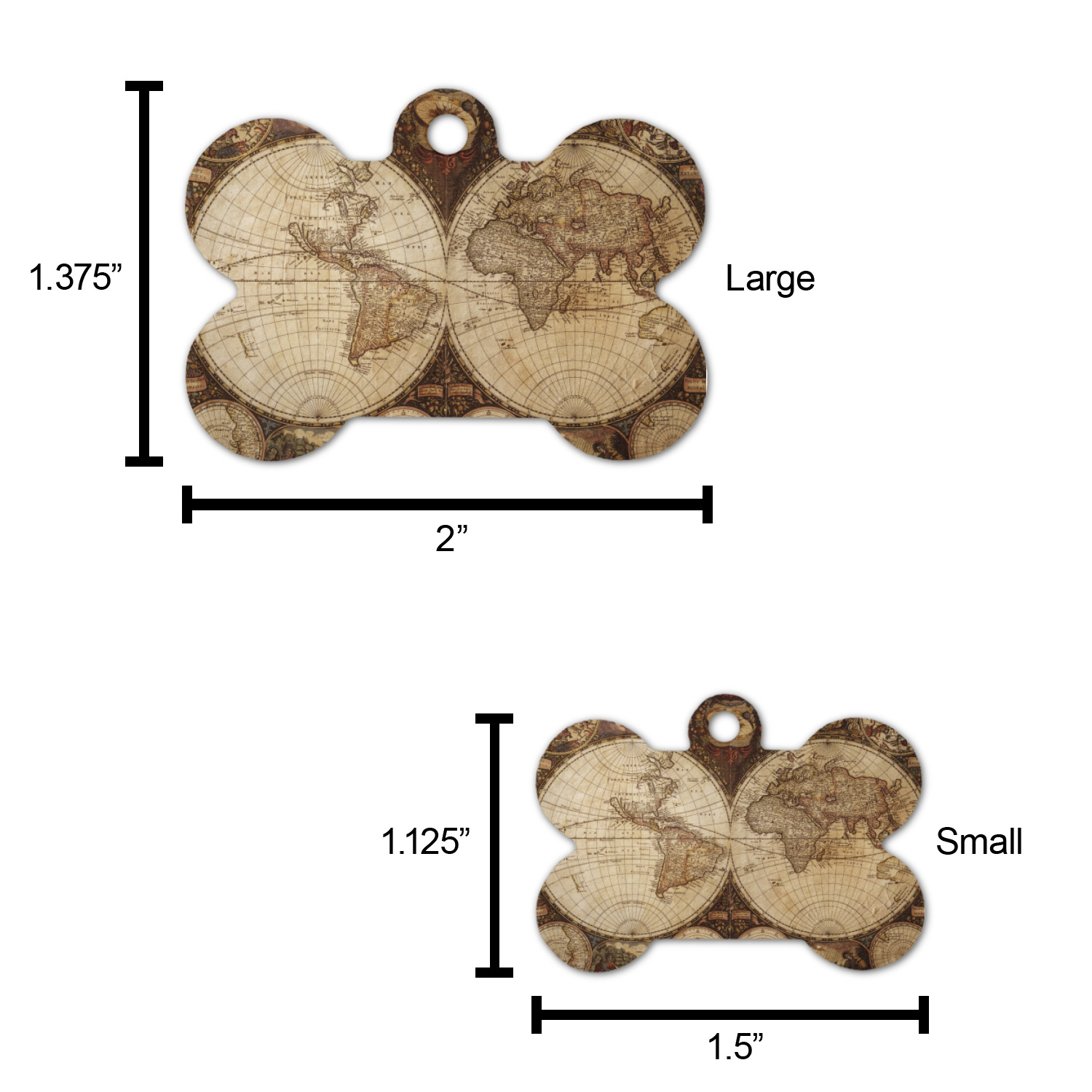 The small bone dog tag size is perfect to pair with our small dog collars, the large size pairs well with our large dog collars.