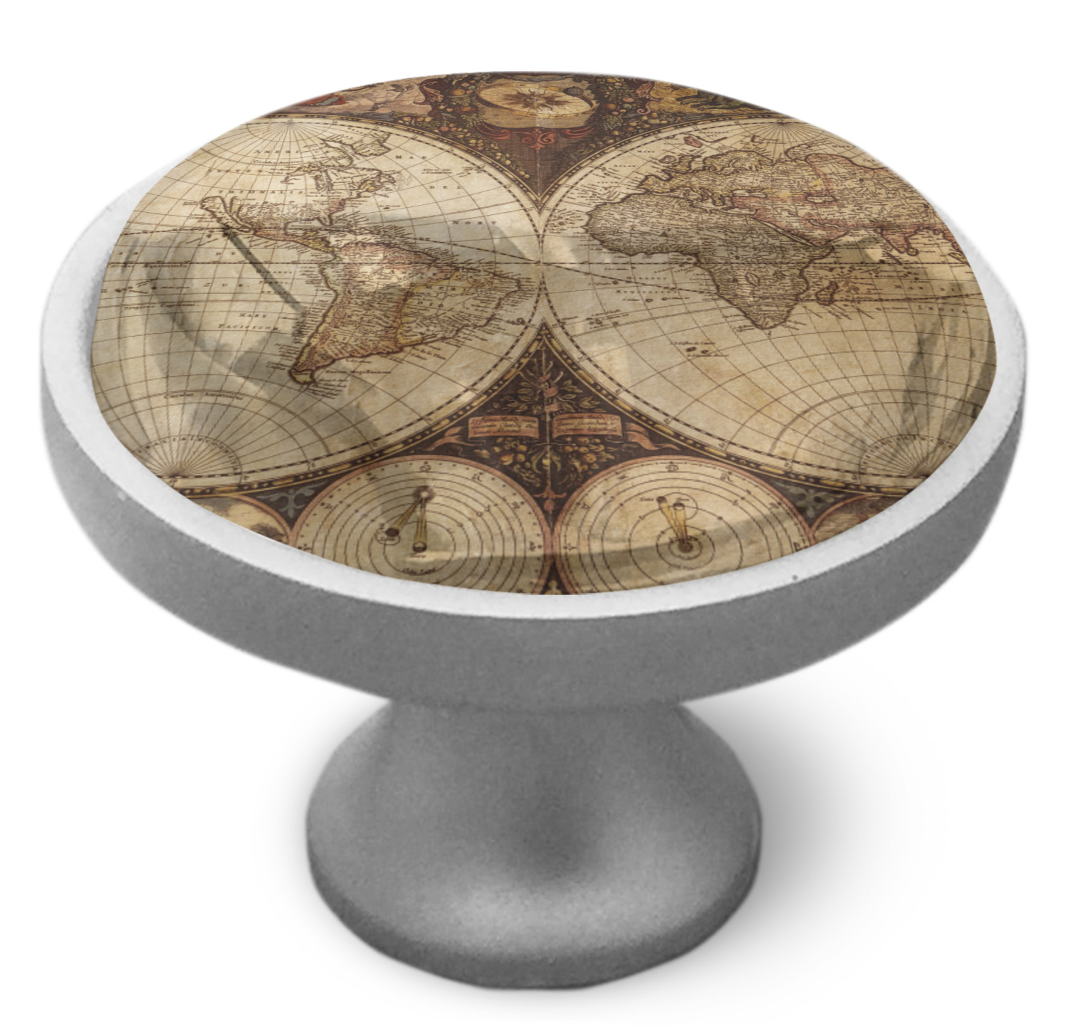 We sell these cabinet pulls in two different colors to better match your room's color scheme. We offer an oil-rubbed bronze base that is black in color, and a satin nickel option, which has a silver color. Your design is displayed across a high gloss vinyl insert that is placed on top of these cabinet handles. We then place a 1 inch thick glass cabochon atop the design, which seals the cabinet knob and makes the colors of your customization stand out. These custom cabinet knobs are approximately 1.3 inches in diameter. Your purchase includes a 1 inch screw that can be used to mount the knob to any cabinet in your home.