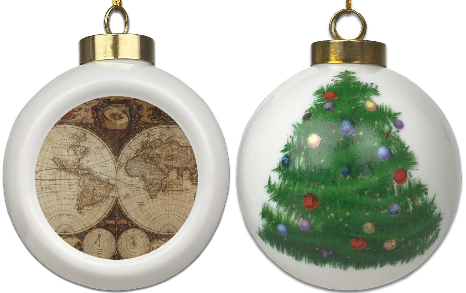 Our Christmas ornaments are a unique ceramic ball shape with a twist as it has a flat face to display your custom design! Select from one of our two design types - Christmas Tree or Poinsettia Garland - to adorn the curved back of your personal design. Each ornament measures 3H x 2.5W x 2D accompanied with a gold string accent for finishing touches to hang on your beautiful Christmas tree!