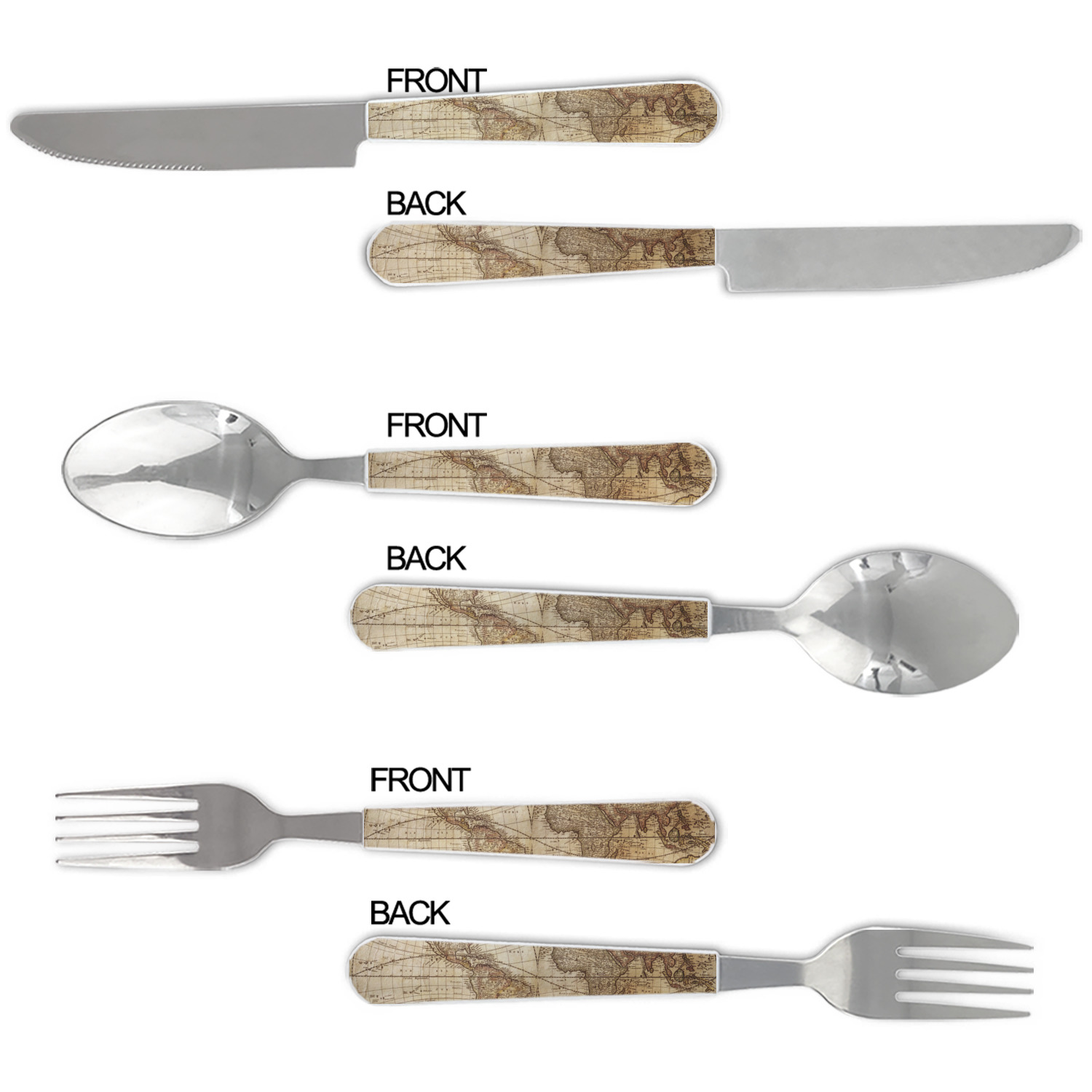 One of those items we all use on a daily basis and never give it much thought - cutlery. Having your own customized set of cutlery adds that special touch. A great addition to our custom plates and drinking pint glasses, this flatware set can be made in the same patterns to match.