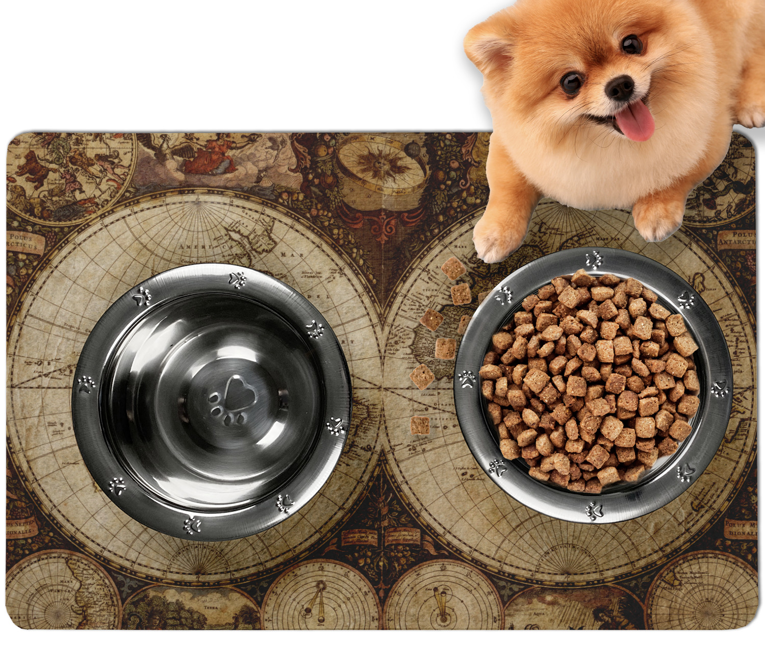 This dog bowl mat, fabricated from polyester, proudly displays your customized design on its top, while its bottom includes a non-slip rubber. This feature allows it to remain firmly in place, even when your dog spills his/her water. With 3 sizes available (18" x 12", 24" x 18", 30" x 24"), the pet food mat has ample space for both a food and water bowl for any sized dogs. Though specified for dogs' use, these mats are also a splendid option for cats.