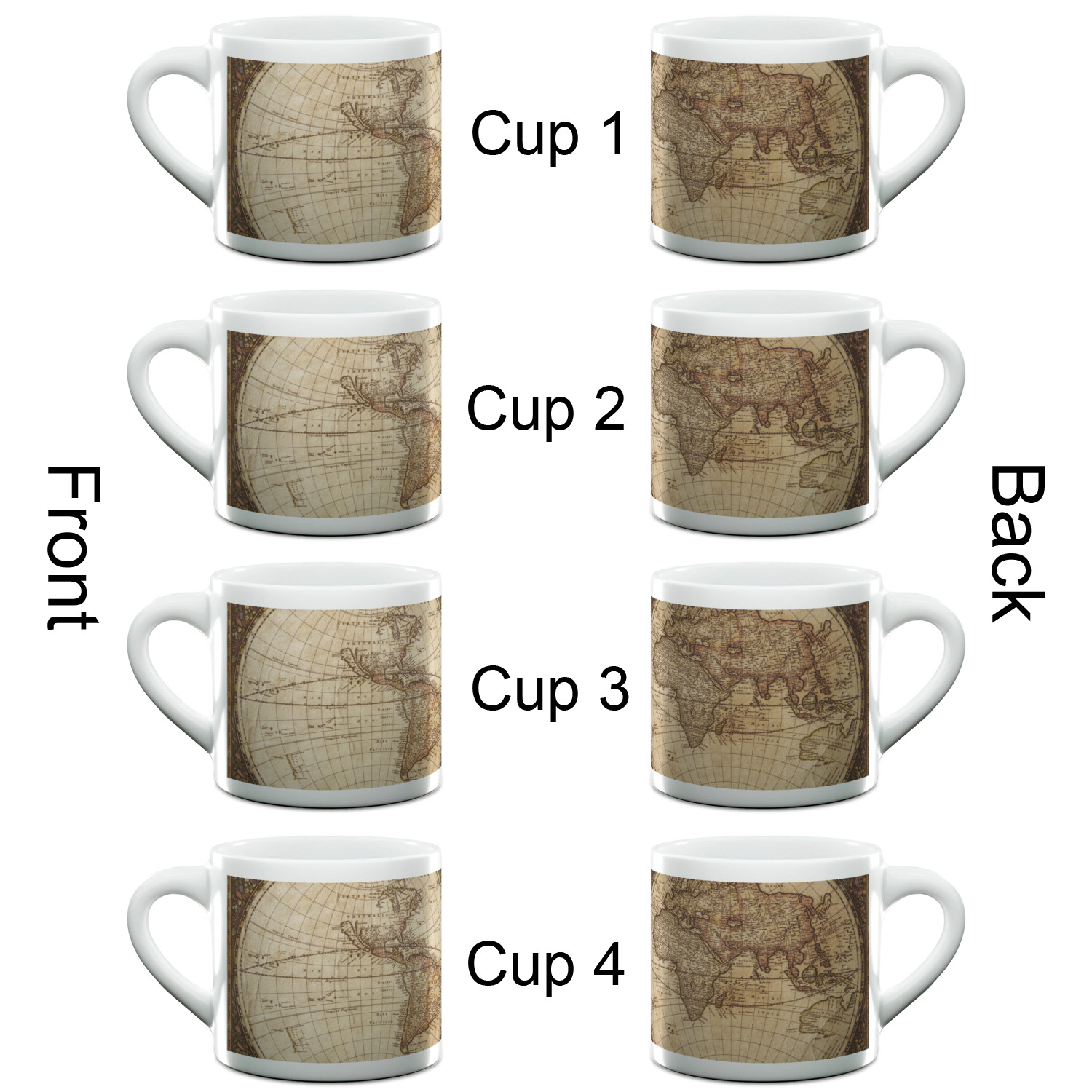 Each of our espresso mugs is a ceramic material sure to keep your drink warm. Personalize one cup for yourself, or order a set of 4! Its the perfect little gift for any coffee lover! We carry two sizes for you to personalize - 3 oz. (approx. 3.25" x 2.325" x 2.625") or 6 oz. (approx. 4" x 2.9" x 2.9"). Our 3 oz. mug is perfect for that single shot espresso while our 6 oz. mug can be your next favorite cappuccino cup holding two shots of espresso!