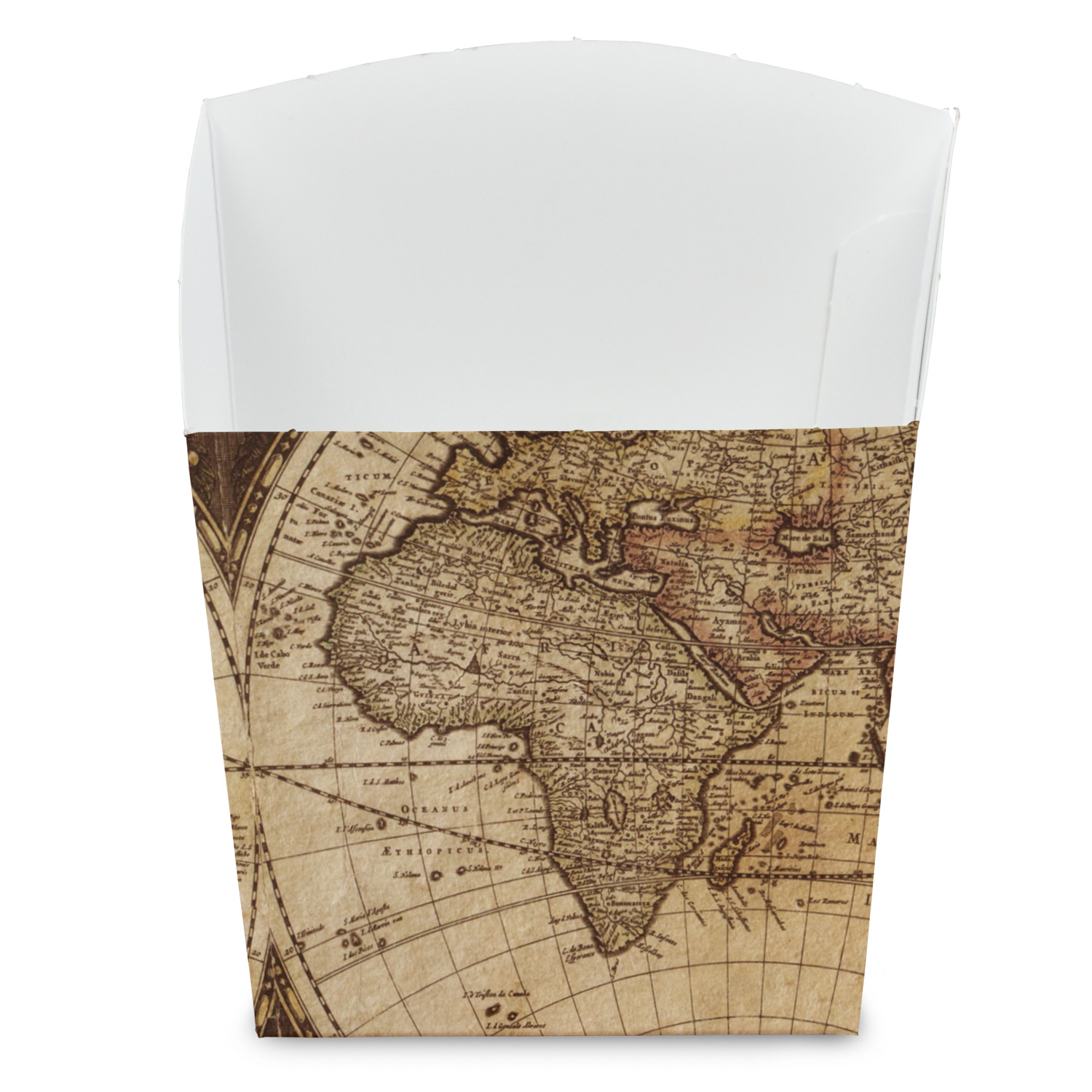 Since it is an open box, it works very well as a party snack cup (instead of plates) for different types of dry snacks and treats such as popcorn, cheezies, pretzels, chips, twizzlers, etc. This box can easily be carried with a drink all in one hand!