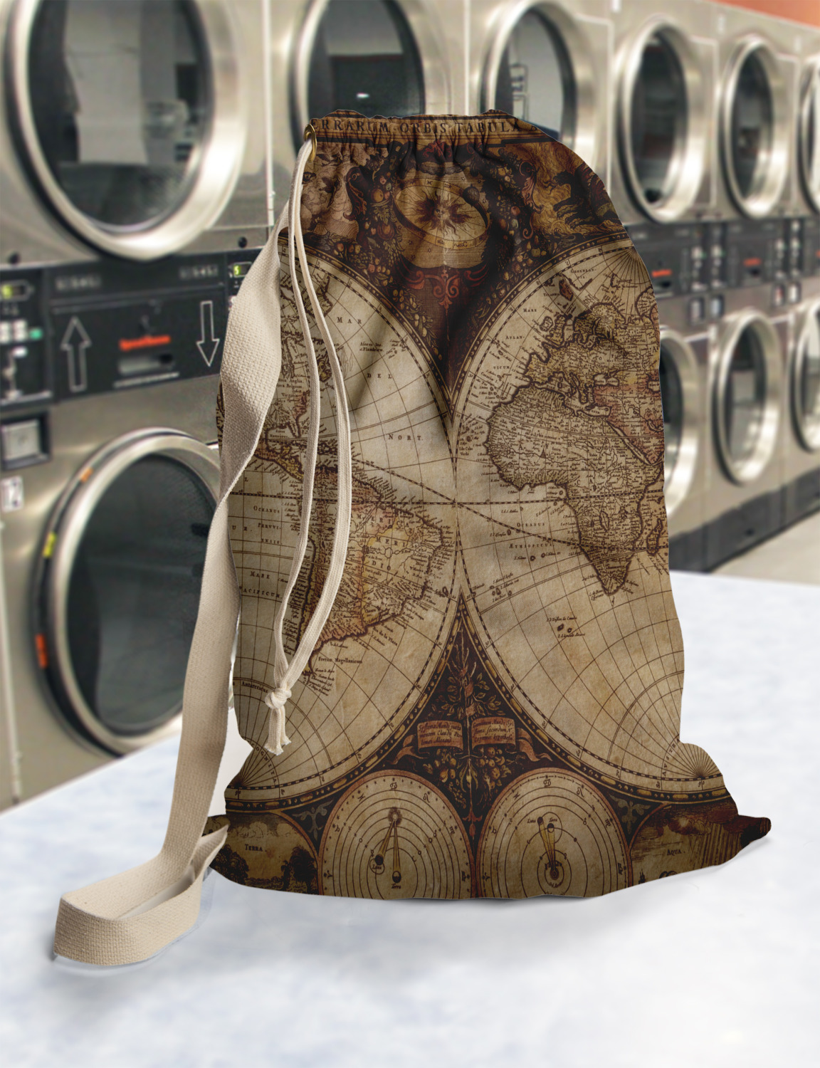 Carry your laundry in style with these customized laundry bags. Available in two sizes, featuring a natural colored woven strap and a cinch cord, these bags hold a lot of clothes or anything else you want to fit in them.