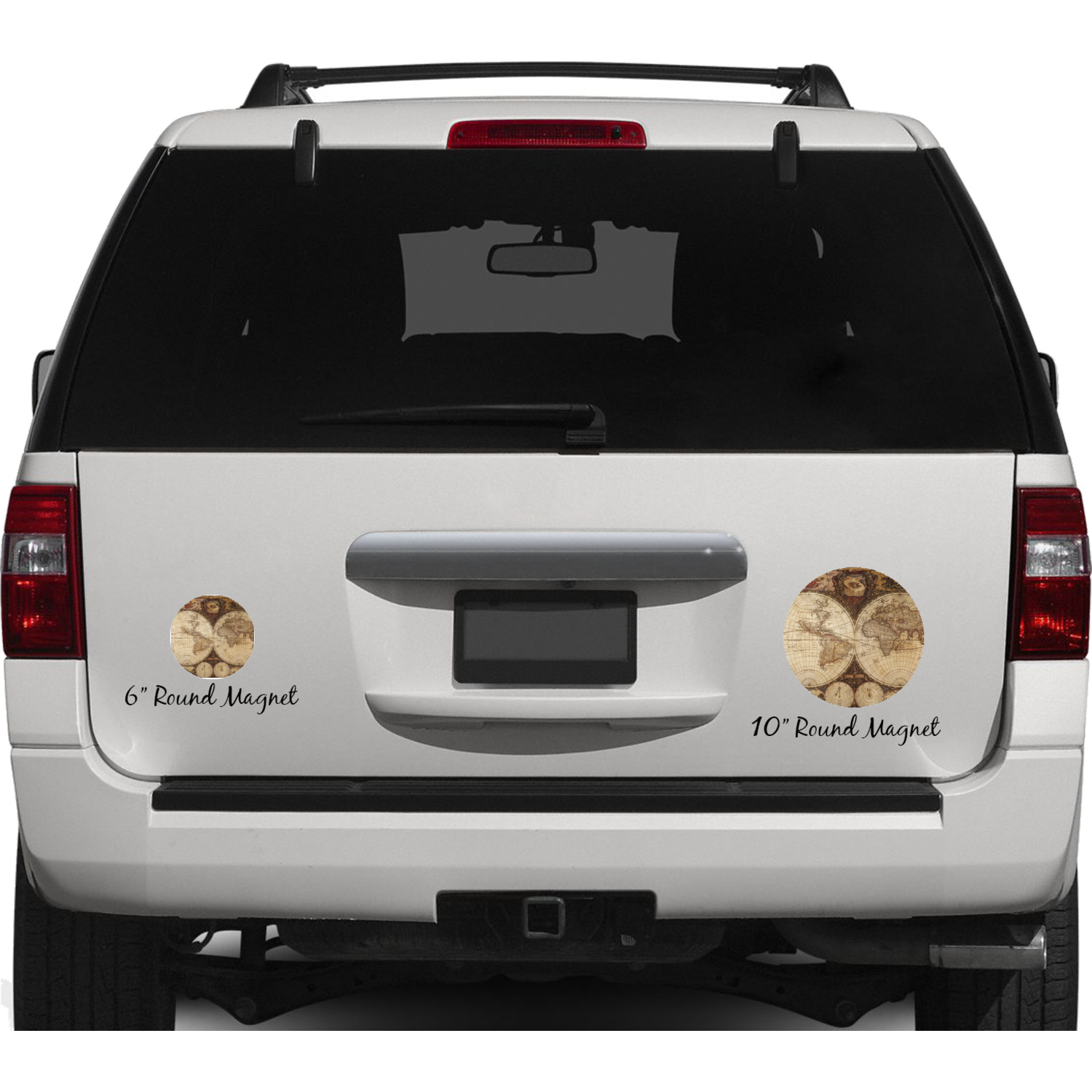 Your personalized car magnets are available for purchase in two shapes and two sizes. We carry round and square editions; each shape can either be 6 by 6 inches, or 10 by 10 inches, depending on your needs. Both versions are 1 millimeter thick, which is considered, within the industry, as the ideal thickness for automobile magnets. The magnetic car decals will adhere to any smooth, metal surface of your cars body, such as the trunk door or a side panel. However, please note that some vehicles are constructed from fiberglass bodies, which prevents the adhesion of anything magnetic. We advise that you test your vehicle before purchasing these magnets.