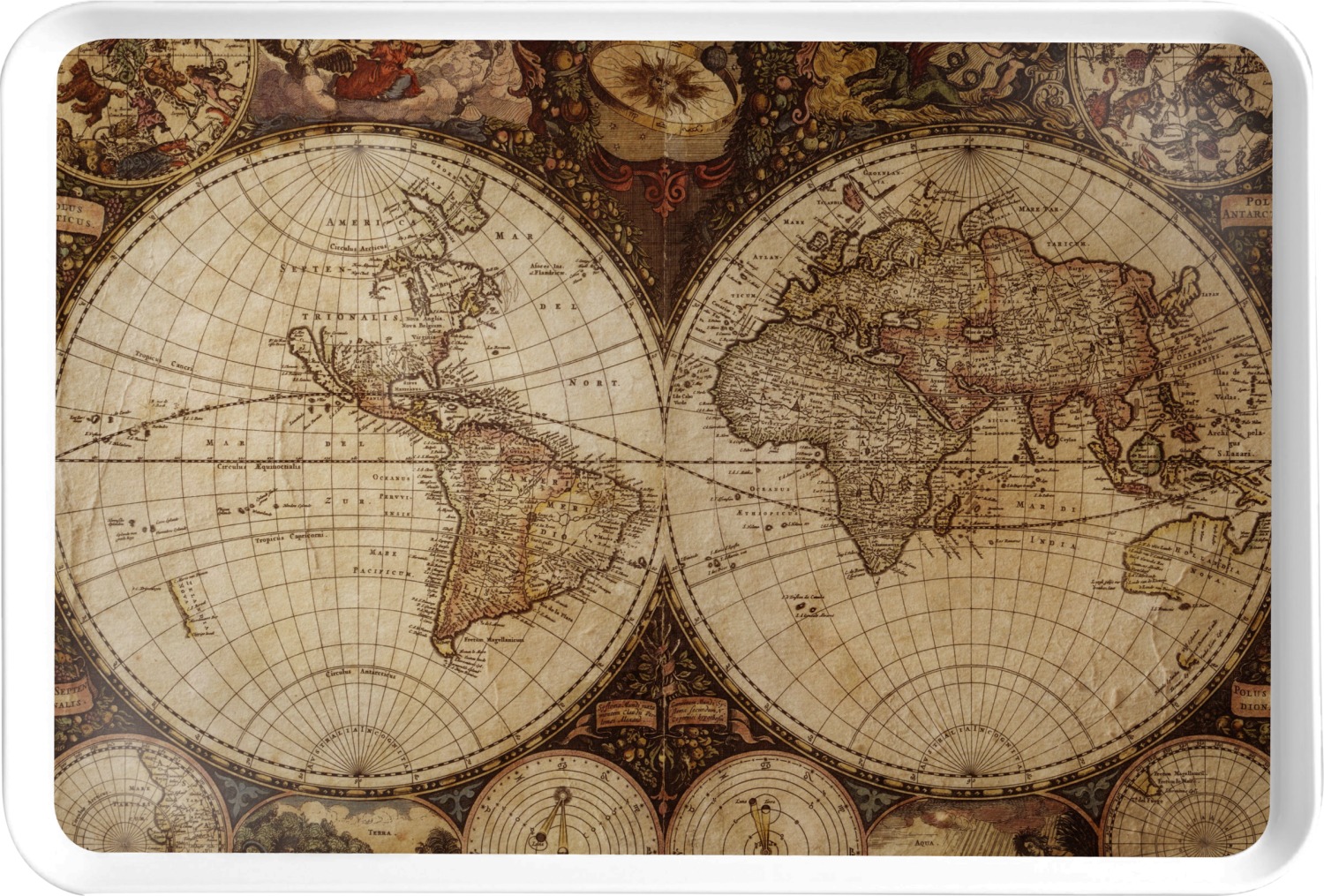 This design is a large world map. The map is a vintage style that looks antique. It is a beautiful combination of browns, oranges, and tans. This design is perfect for passport holders, luggage tags, and other related travel accessories. This design is not personalized, but you can easily add personalization if you like.
