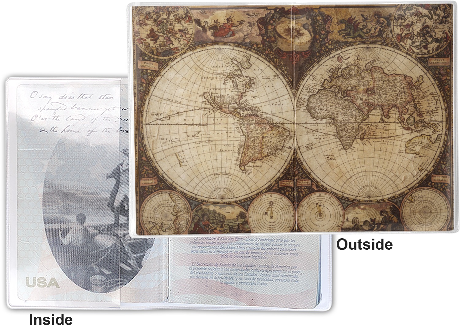 This cover is made of a sturdy clear vinyl with a personalized vinyl insert inside. There is a large and a small pocket on either side to hold the covers of your passport easily and firmly. The passport holder is approximately 7.5" x 5.25", the perfect size to snugly fit your passport. This slim cover is the perfect way to protect your passport without being one more bulky item you have to carry.