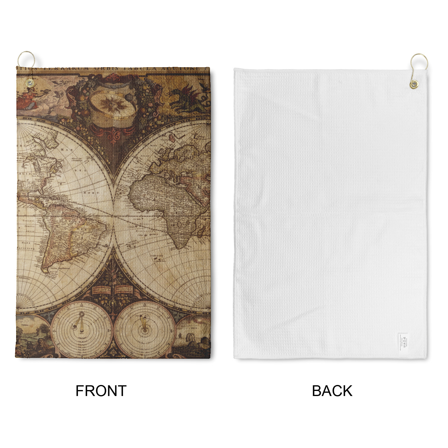Personalize your design for your towel in our design studio then we will custom print and make it for you. The heavy duty brass grommet and hook are perfect for hanging anywhere you need it to. The waffle weave material is a durable microfiber material that will absorb up to 7 times its weight.