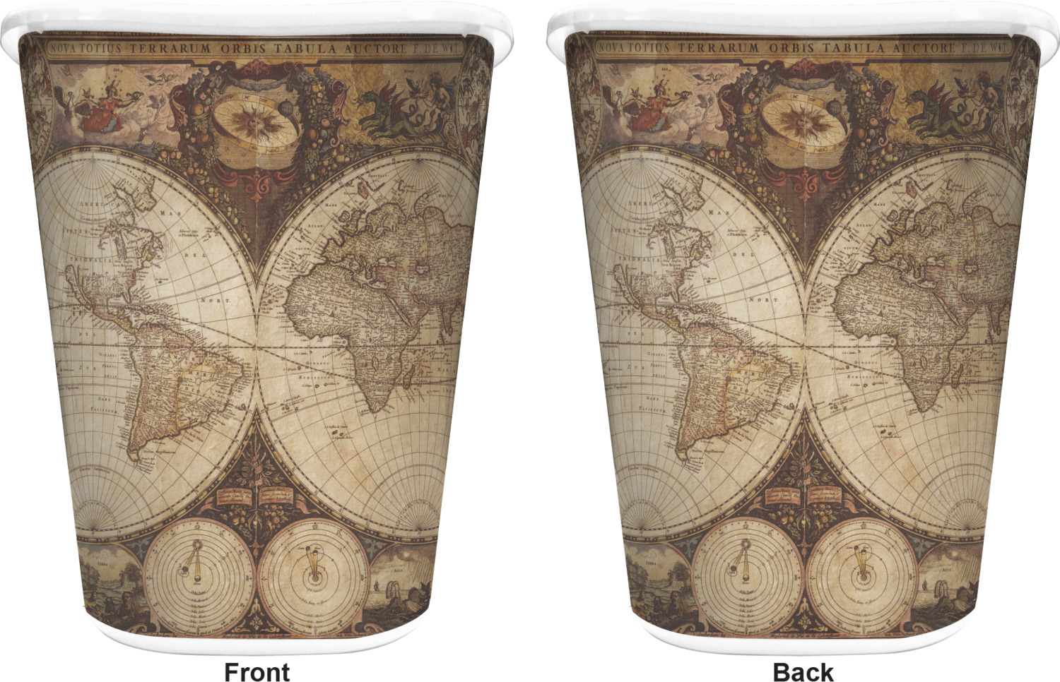 You can choose to purchase these decorative wastebaskets in either a white or a black color that will show on the base and the upper rim. Your customization is printed on a high-gloss, fine-quality vinyl adhesive, and you can choose to either have this adhesive applied to one side only or to both sides. As such, this plastic wastebasket can be single-sided or double-sided, depending on your creative vision. Your customization is printed using durable inks, making the design waterproof and resistant to fading over time.