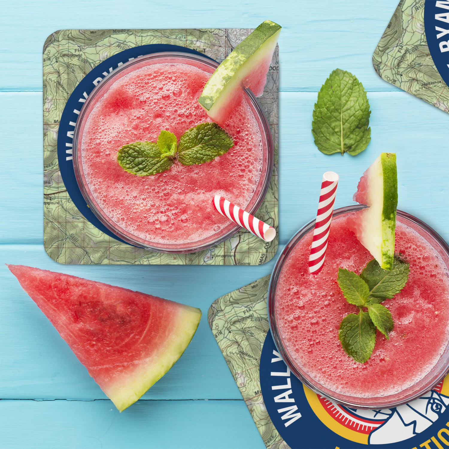 Your custom coasters have a smooth, laminated top and a cork bottom to prevent any unwanted slippage. We print your customized design atop this laminated surface, in bright and vibrant colors.