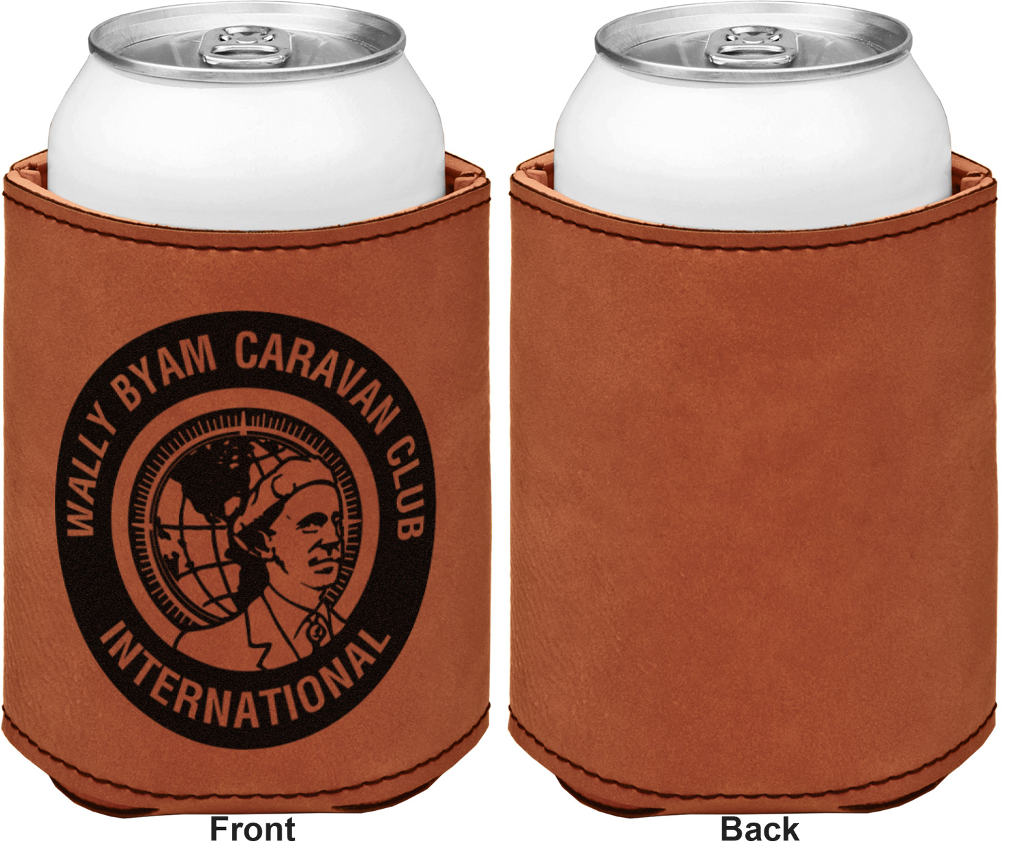 This can sleeve is made from a cognac-brown leatherette and stitched with a sturdy, black thread. A slim padding lines the inside of your can sleeve to allow for a better fit once your drink is inserted. The sleeve itself measures at 4 by 4.5 inches, allowing this custom can sleeve to accommodate most canned drinks. Your personalized design can be engraved on the front and back, or solely the front. When laser-engraved, your design appears as a black coloration which contrasts the leatherette nicely.