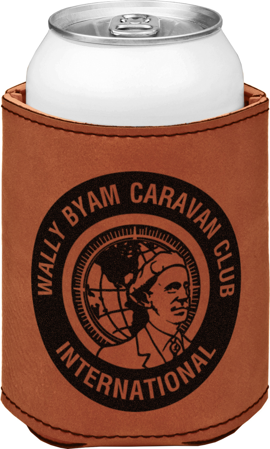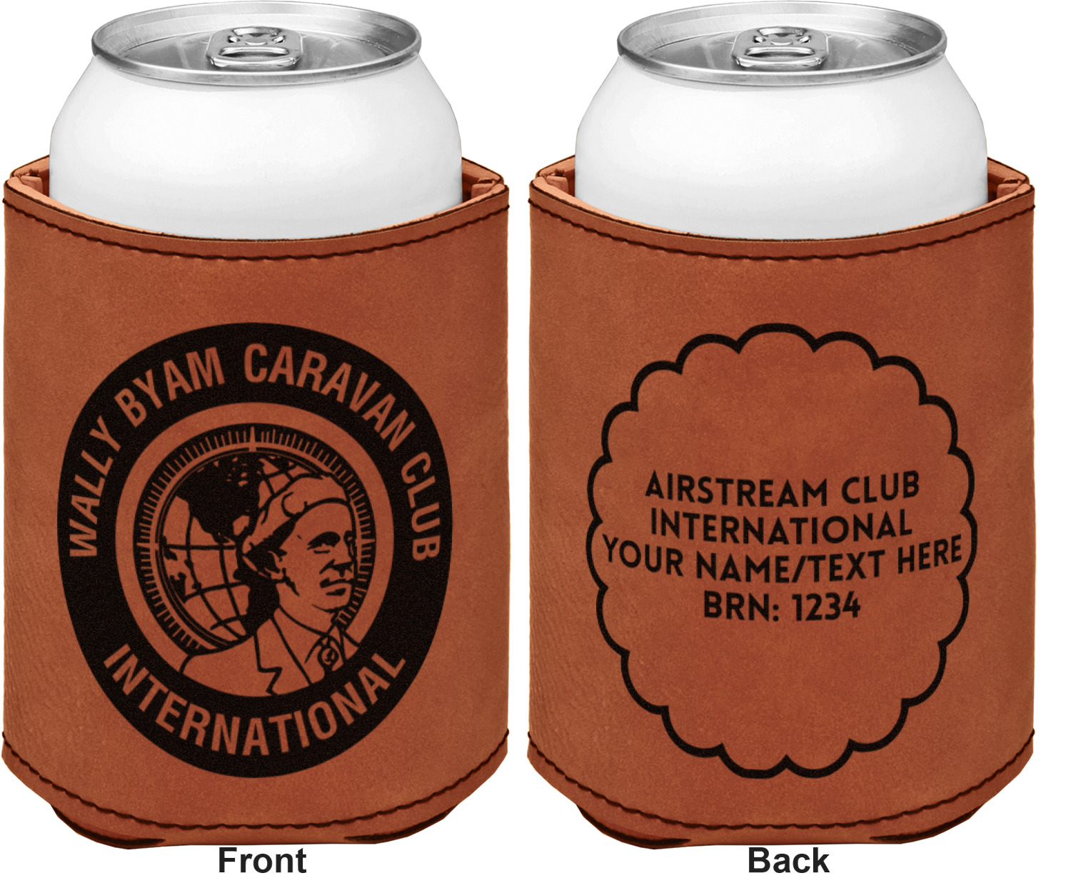 This can sleeve is made from a cognac-brown leatherette and stitched with a sturdy, black thread. A slim padding lines the inside of your can sleeve to allow for a better fit once your drink is inserted. The sleeve itself measures at 4 by 4.5 inches, allowing this custom can sleeve to accommodate most canned drinks. Your personalized design can be engraved on the front and back, or solely the front. When laser-engraved, your design appears as a black coloration which contrasts the leatherette nicely.