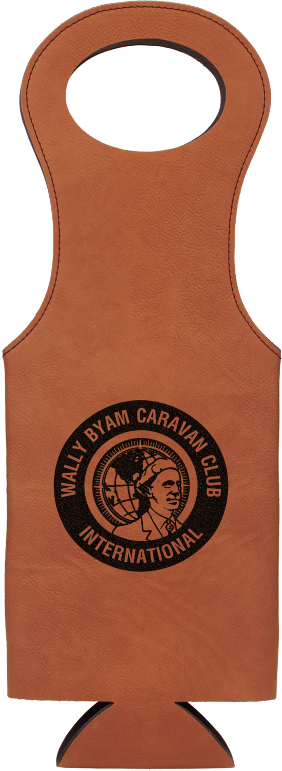 This wine carrier is made from a stunning leatherette, in a cognac-brown color. Strong, black stitching lines the sides of your wine bottle bag and provides extra durability. The interior is lined with a padded, black material to allow for a snug fit once your bottle is placed inside. At the top of this wine gift bag, you'll find two oval shaped handles that elegantly complements the rest of the bag's style. We provide you with the option of laser-engraving the front, or the front and back of your new personalized wine bag!
