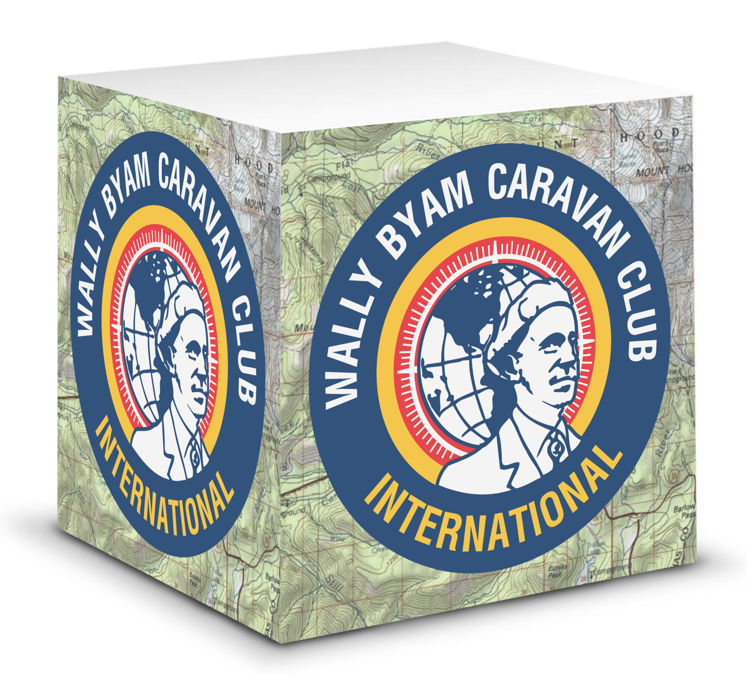 This note cube features 700 sheets of matte, white paper. Each sheet measures at 3.5 by 3.5 inches and has an adhesive strip at its top. Your personalized design is displayed on all four edges of the sticky pad.