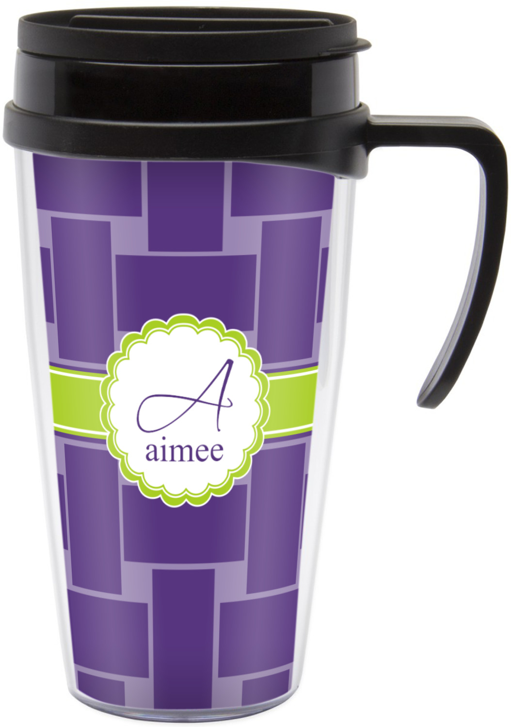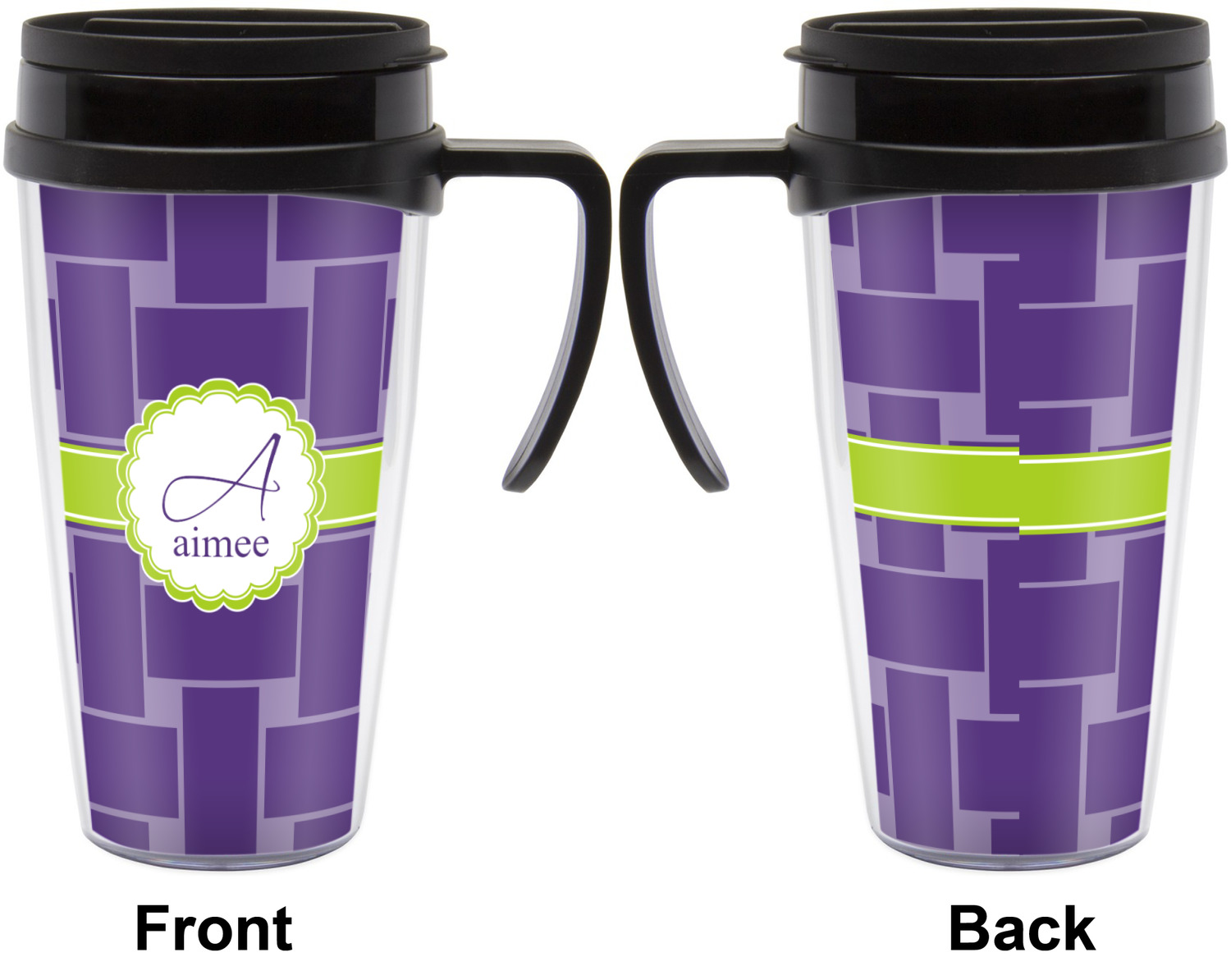 These thermal mugs are free of BPA, and insulated, to keep your drinks hot or cold. The black, snap on lid and the slider for sipping allows you to conveniently sip your drink without constantly worrying about a disastrous spill. We offer this mug with and without a handle, to better suit your needs. Each custom thermal mug holds up to 16 ounces of liquid and displays your customization on all sides on premium gloss media inserts.