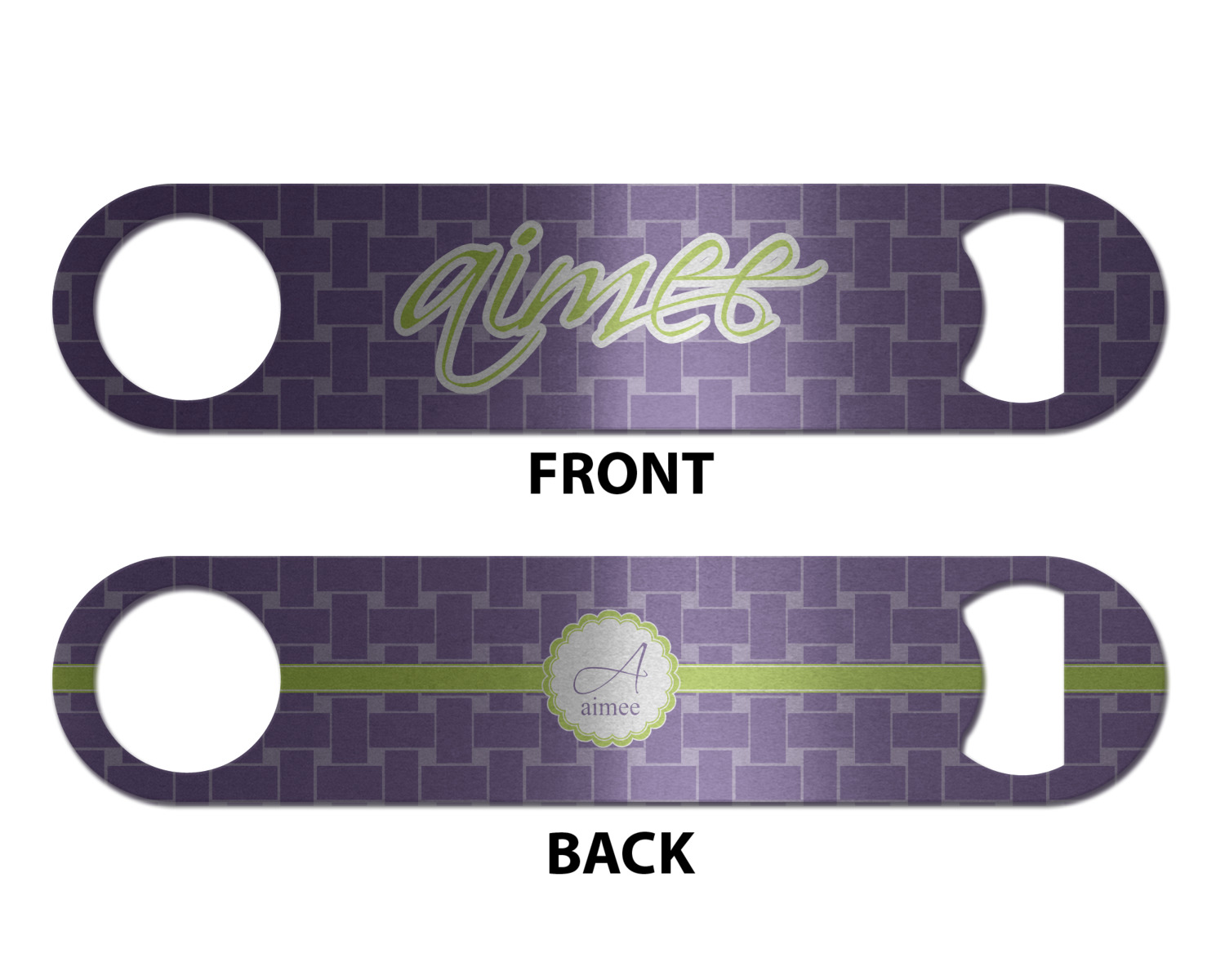 Made from stainless steel, these beer bottle openers are 7 by 1.625 inches, giving you plenty of leverage when trying to open a stubborn bottle. On one end of this personalized bottle opener, you'll find a circular hole for you to hang and display your opener. On the opposite end, you'll find the tool used for opening bottles. This opener in particular has the same structure and style as professional bartender bottle openers. Your customization is sublimated onto both the back and front, and both sides can be customized individually. Choose from one of our two base colors - white or silver.