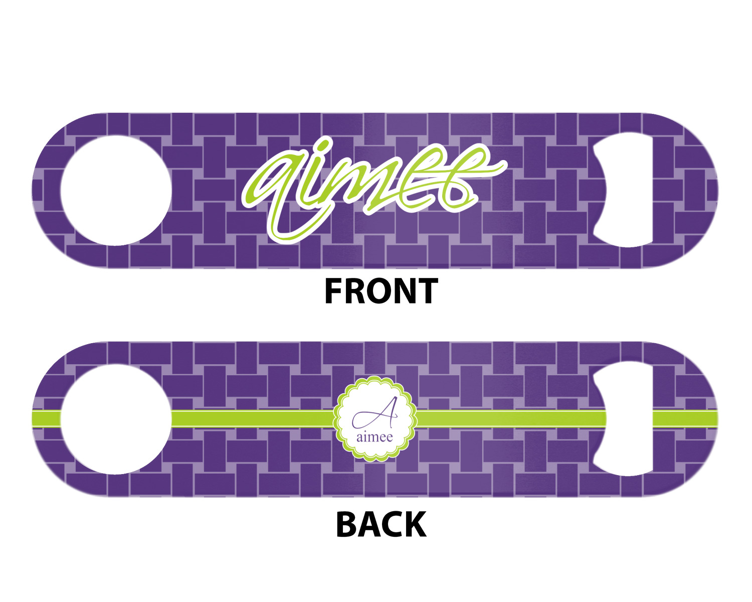 Made from stainless steel, these beer bottle openers are 7 by 1.625 inches, giving you plenty of leverage when trying to open a stubborn bottle. On one end of this personalized bottle opener, you'll find a circular hole for you to hang and display your opener. On the opposite end, you'll find the tool used for opening bottles. This opener in particular has the same structure and style as professional bartender bottle openers. Your customization is sublimated onto both the back and front, and both sides can be customized individually. Choose from one of our two base colors - white or silver.