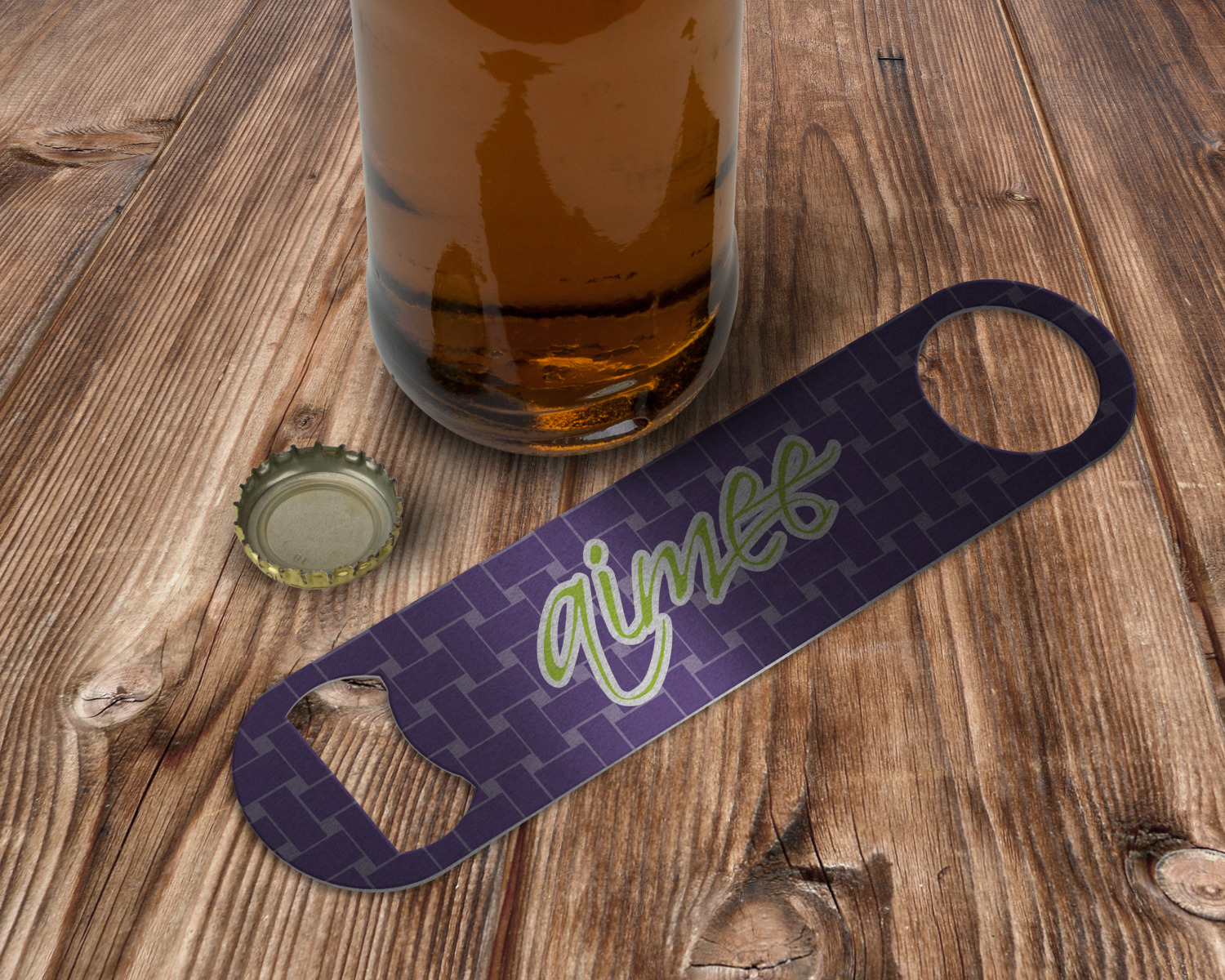 Stop struggling with the caps or your bottled beverages by purchasing one of our personalized bottle openers! These wrench-like custom bar blades are built to last. Customize one for your home's bar, or as a practical gift for a loved one!