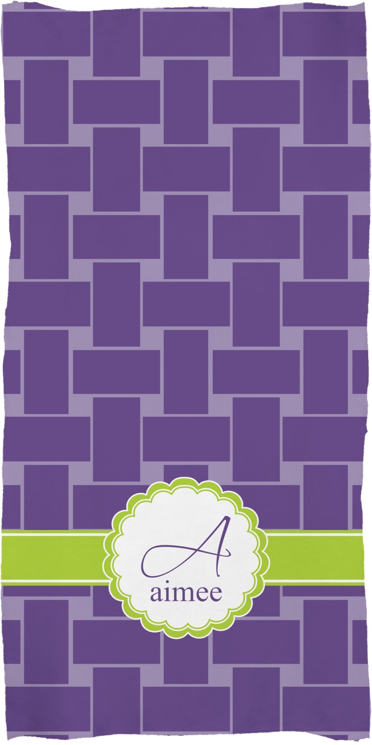 These customized bath towels are slightly larger than your standard towel and are the ideal size for wrapping around your body. They measure approximately 60" x 30". Your customization is displayed across the entire front face of the towel, while the back is white.