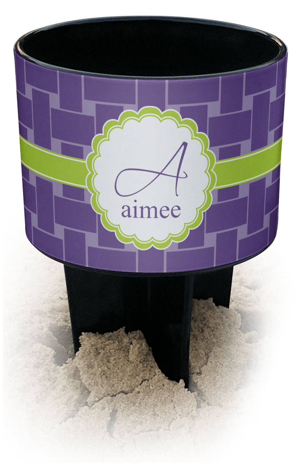 This cup holder has a large stake at its bottom that anchors it to the sand or ground below, while the cup holder rests above the stake. The entire drink holder is made of durable plastic and displays your customization around the cup holder portion. We sell these personalized beach spikers in two different colors: black and white.