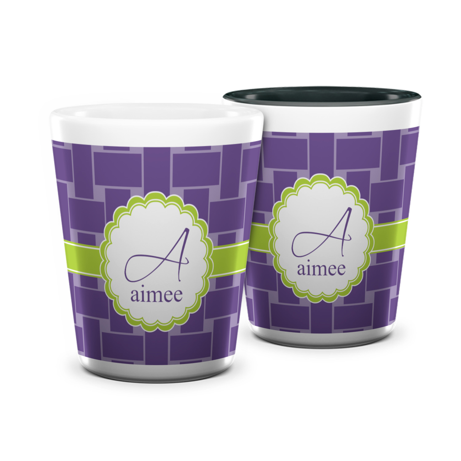 Made from ceramic these shot glasses are printed in full color with the design of your choice. These are a standard 1.5oz size and stand 2.25" tall. Available in a full white ceramic or a two-tone with a black color inside the shot glass. Buy a single or a set of 4, all of which can be designed separately to get you just what you want and need.