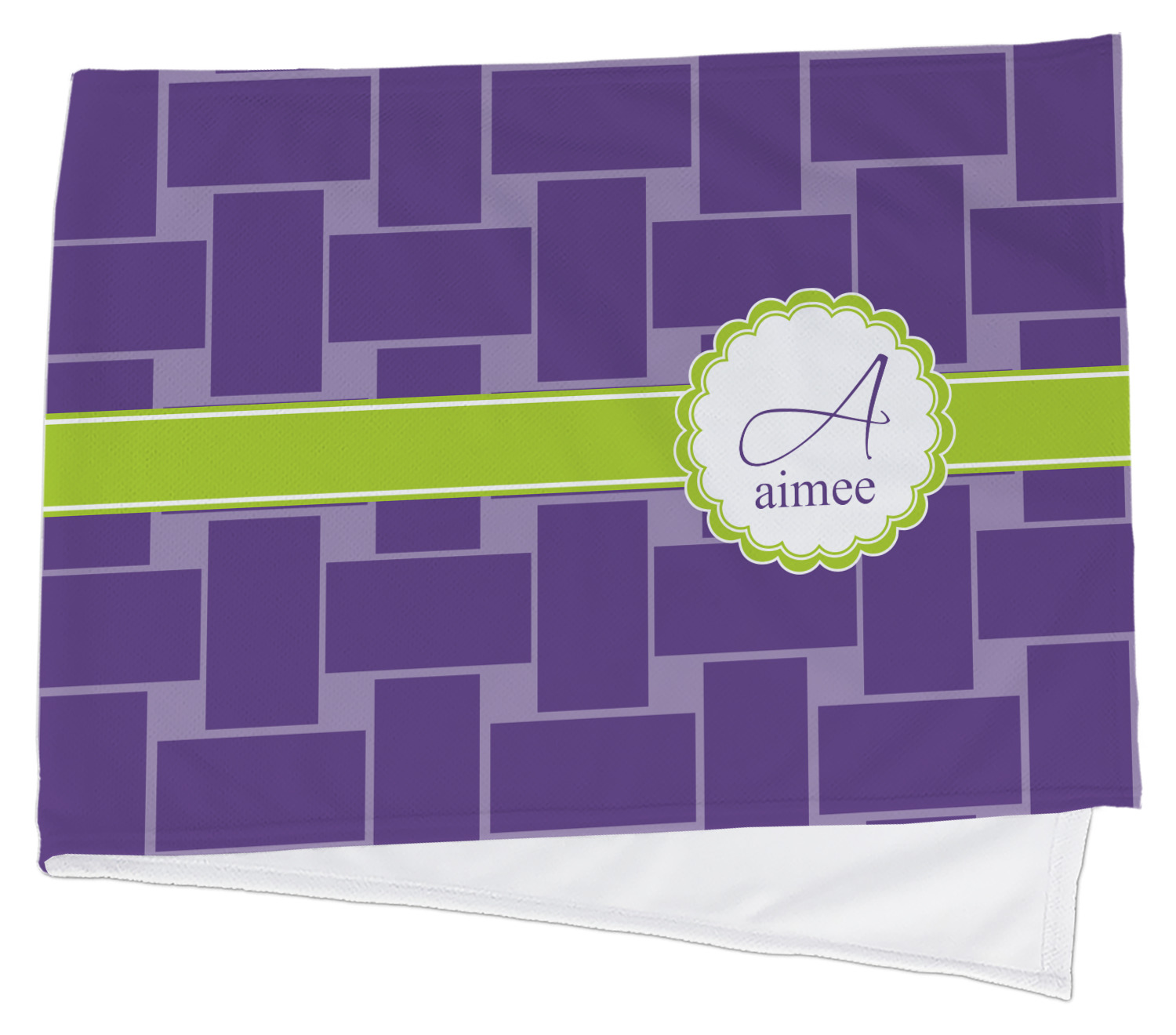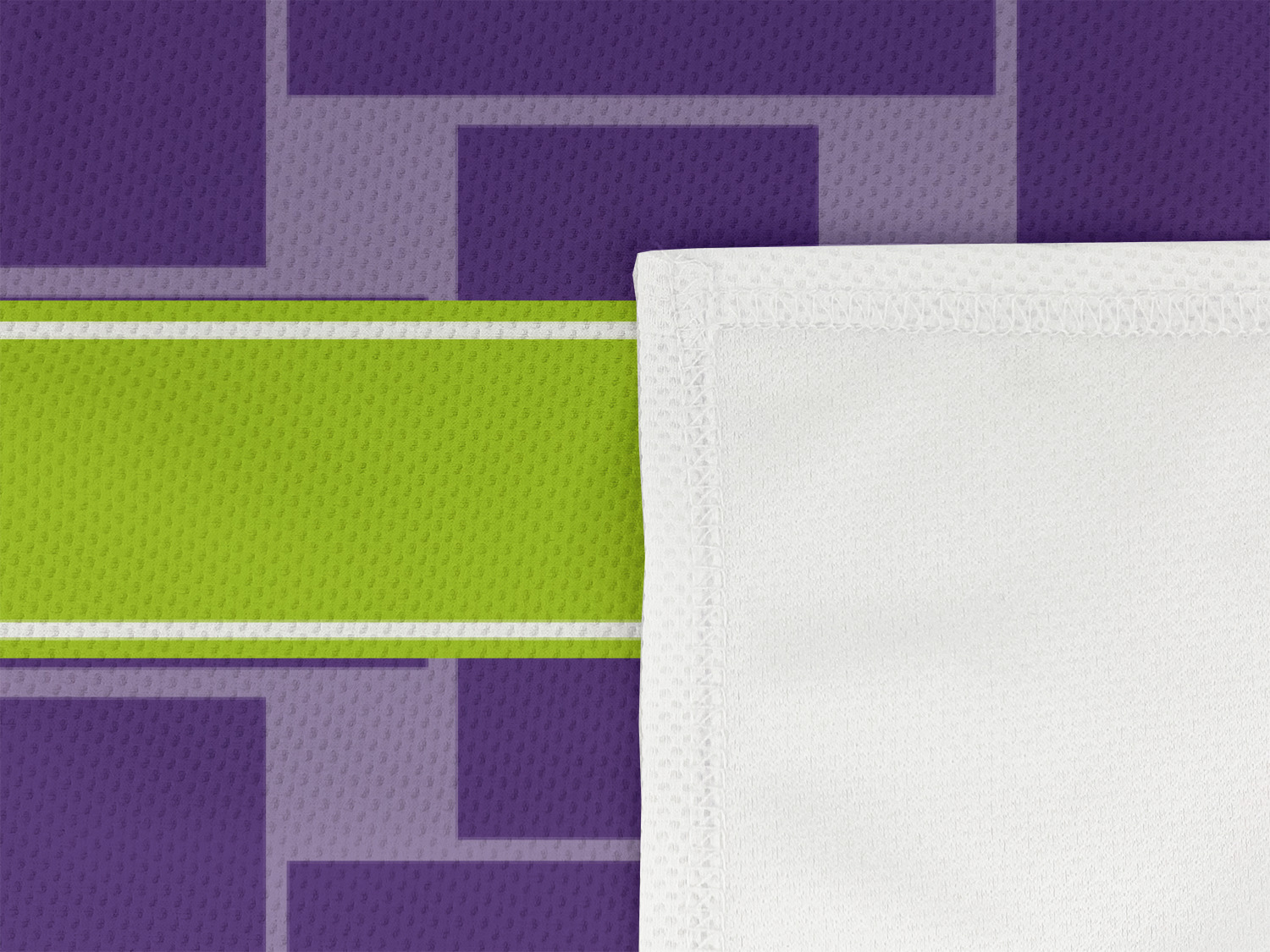 This fun geometric pattern takes the traditional waffle weave and infuses it with bold purple and lime green.