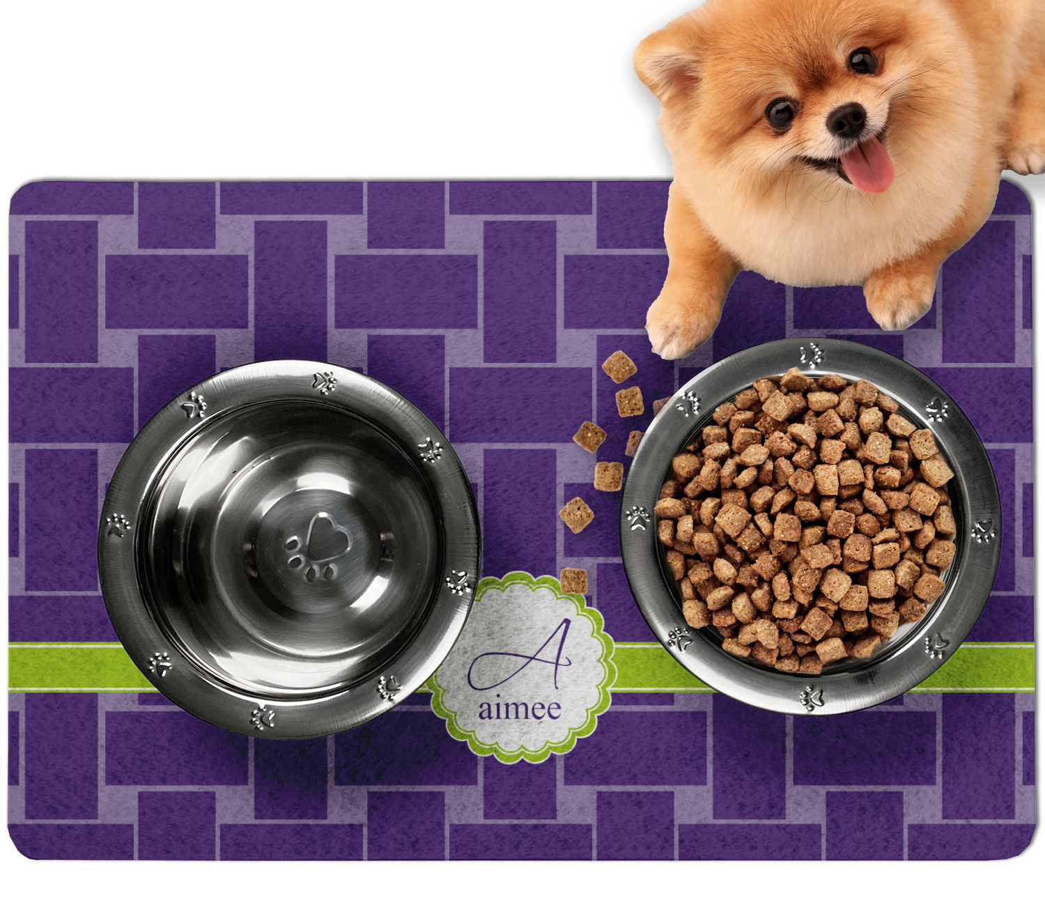 This dog bowl mat, fabricated from polyester, proudly displays your customized design on its top, while its bottom includes a non-slip rubber. This feature allows it to remain firmly in place, even when your dog spills his/her water. With 3 sizes available (18" x 12", 24" x 18", 30" x 24"), the pet food mat has ample space for both a food and water bowl for any sized dogs. Though specified for dogs' use, these mats are also a splendid option for cats.