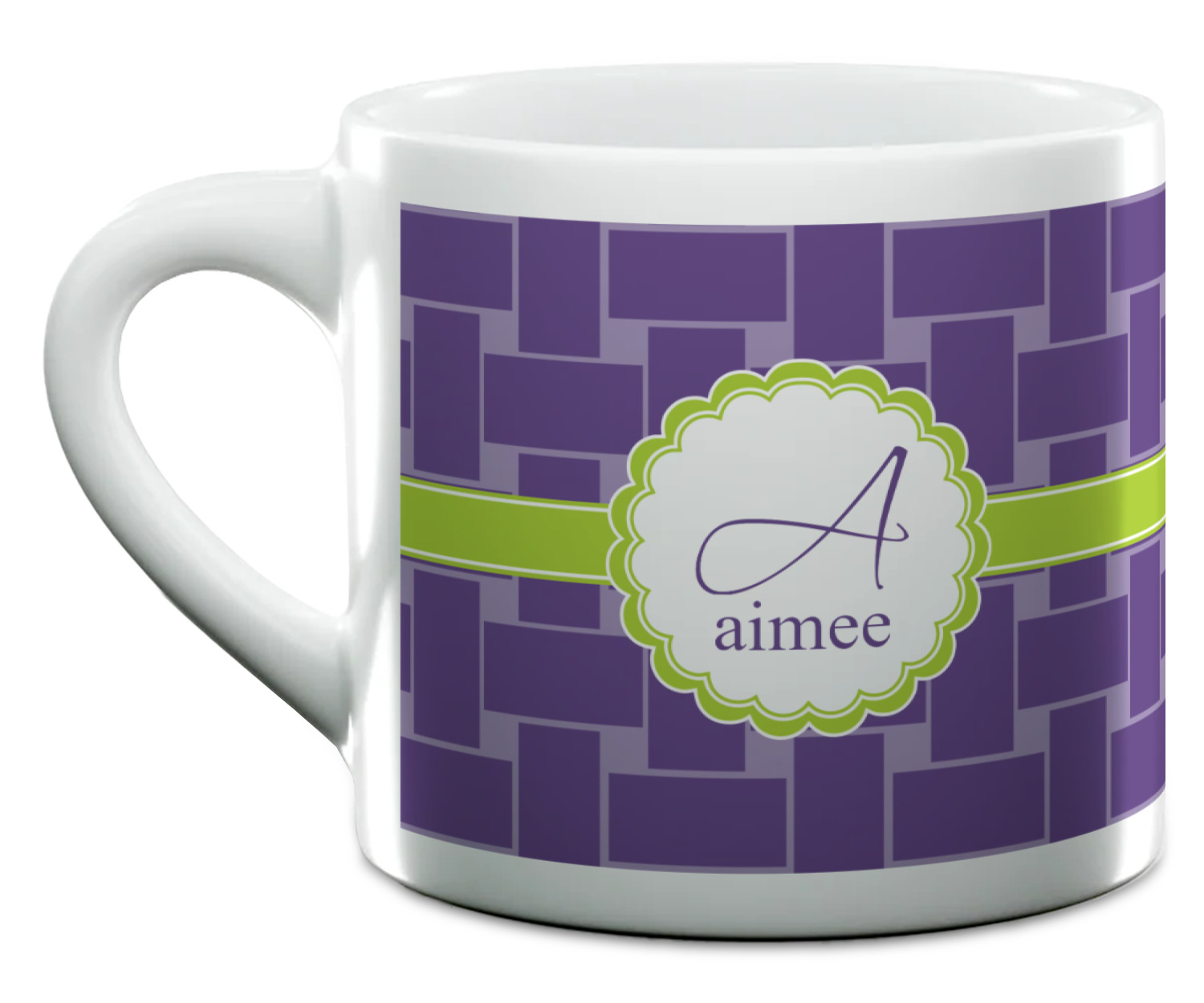 Each of our espresso mugs is a ceramic material sure to keep your drink warm. Personalize one cup for yourself, or order a set of 4! Its the perfect little gift for any coffee lover! We carry two sizes for you to personalize - 3 oz. (approx. 3.25" x 2.325" x 2.625") or 6 oz. (approx. 4" x 2.9" x 2.9"). Our 3 oz. mug is perfect for that single shot espresso while our 6 oz. mug can be your next favorite cappuccino cup holding two shots of espresso!