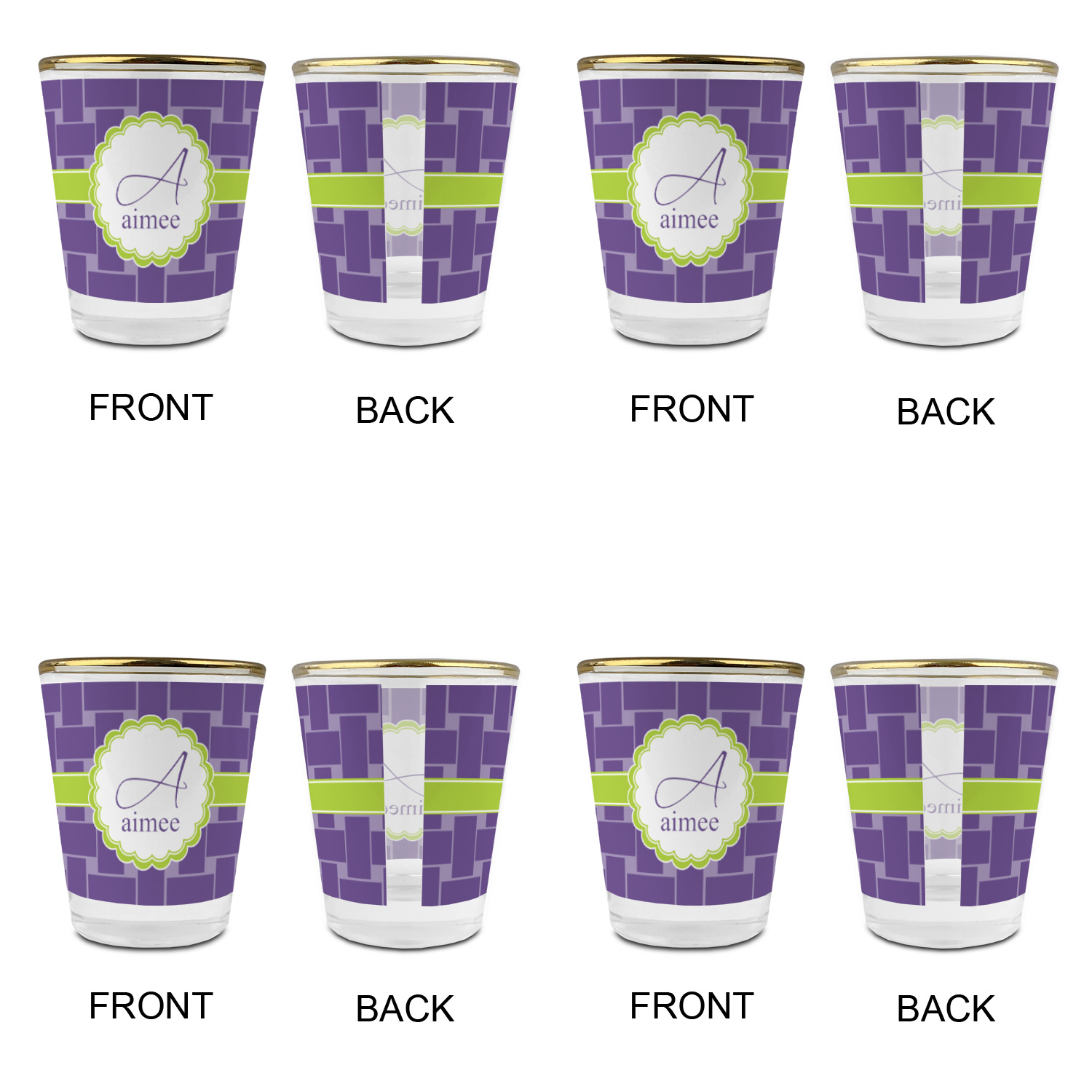 Made with frosted glass, these shot glasses are printed in full color with the design of your choice. They are a standard 1.5oz shot glass and are 2.4" tall. The print is wrapped around the shot glass in a full wrap and boldly displays your customization.