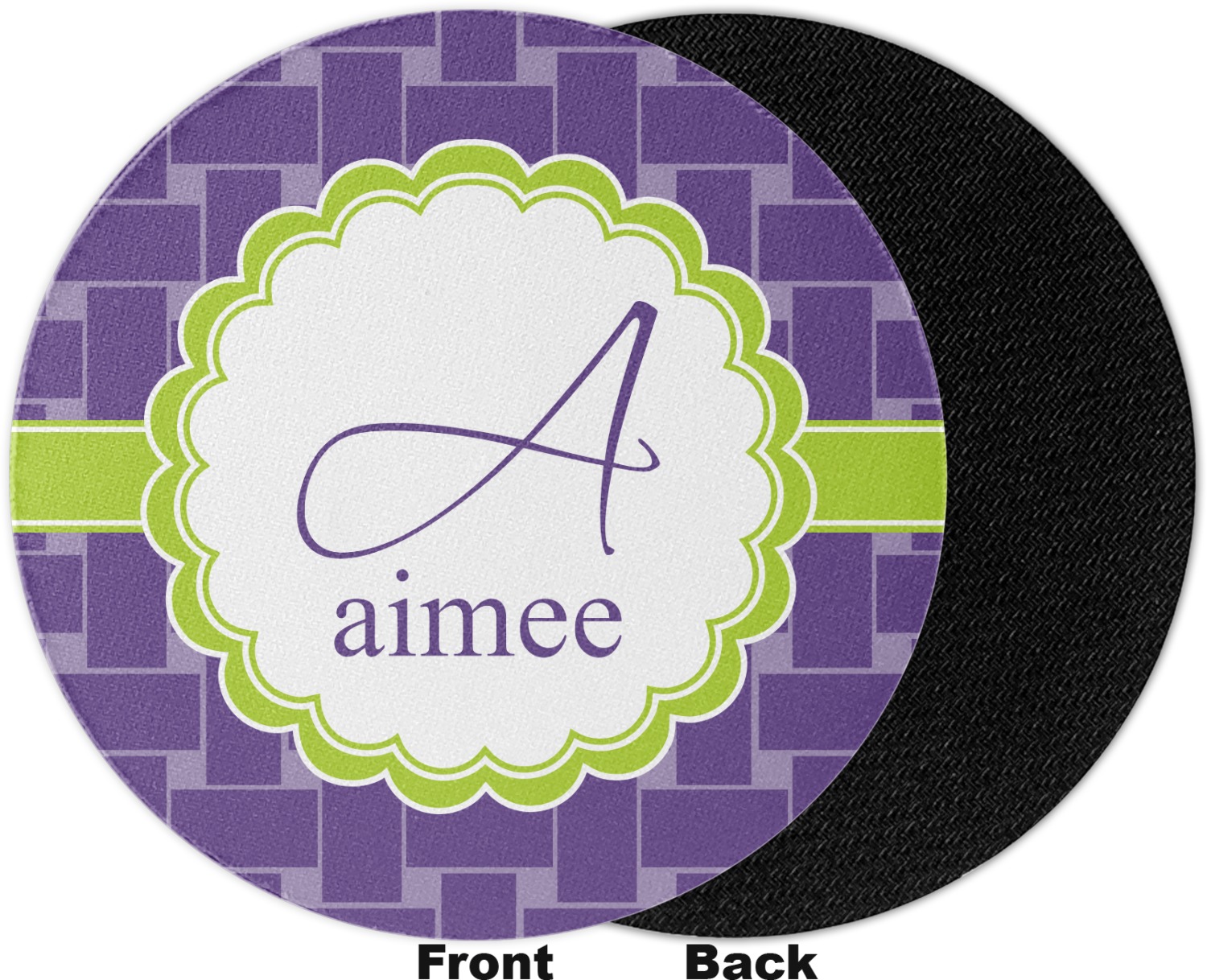 The rigidity of the weave is playfully contrasted with the scalloped center label, the perfect place for the personalization of your choice.