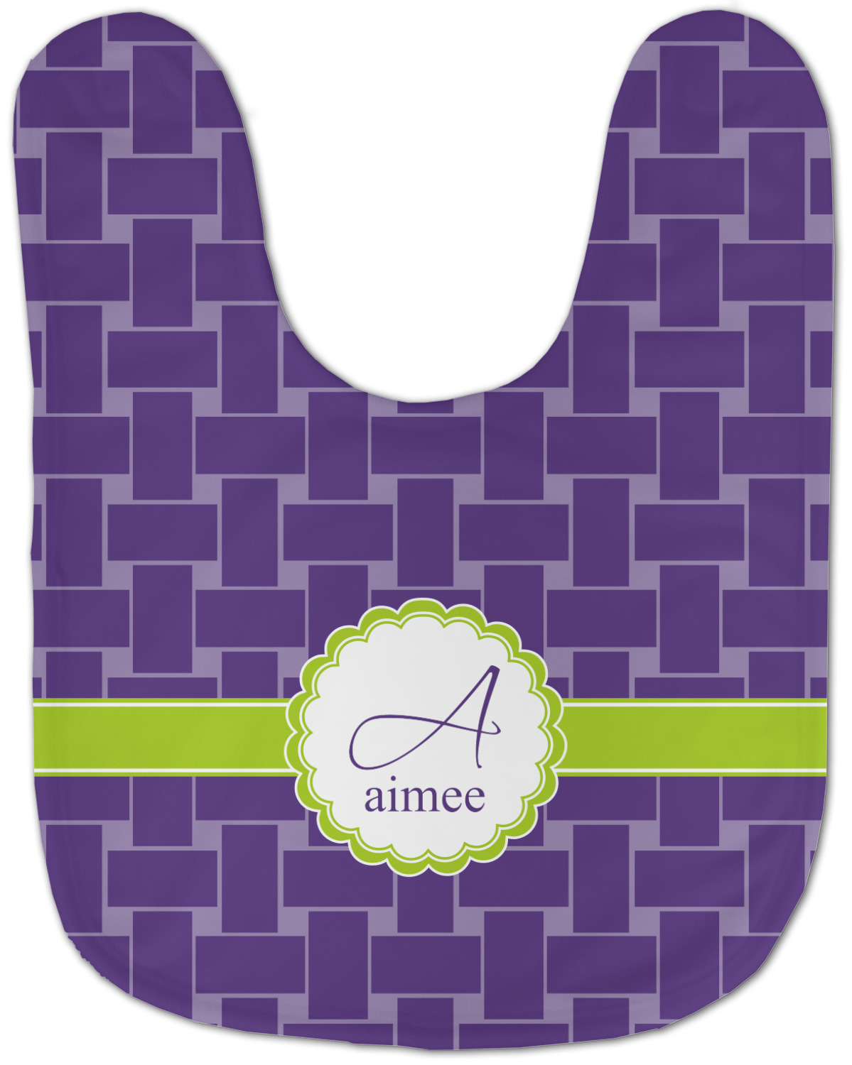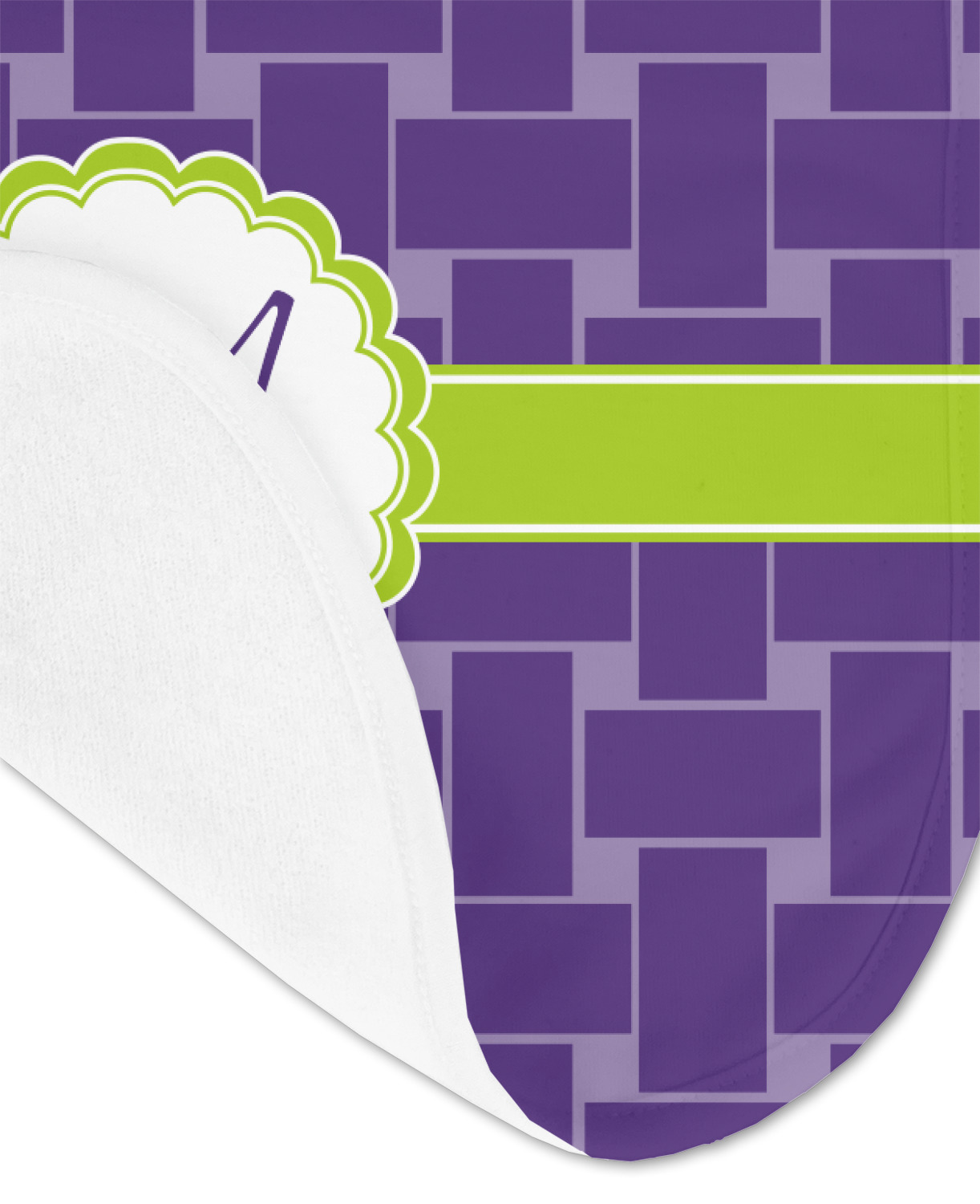 Made of soft polyester, each customizable bib hugs comfortably around the neck to catch every drip and drool. Each bib design is printed with baby-safe ink and finished with a secure stitch pattern and velcro clasp. We carry two customizable bib styles -Microfiber Velour and Jersey Knit.