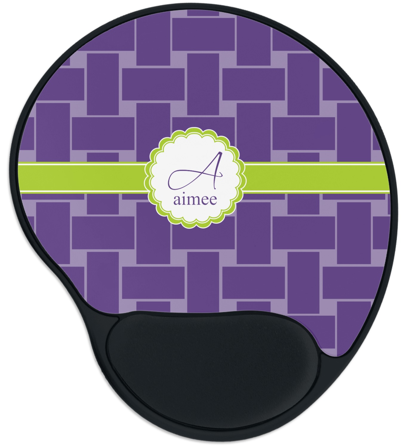The top of these personalized mouse pads are made from a polyester, while the underside is plastic. The back of these mouse mats include rubber feet to prevent any slippage while in use. A padded wrist support, made from plush memory foam, occupies the bottom section of these computer mouse pads. Your customized design is printed onto the face of this mat, with the remaining sides and support piece colored in black. The mat itself is rounded and measures at 10.25" x 9.13".