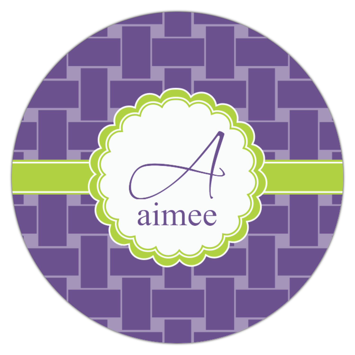 The rigidity of the weave is playfully contrasted with the scalloped center label, the perfect place for the personalization of your choice.