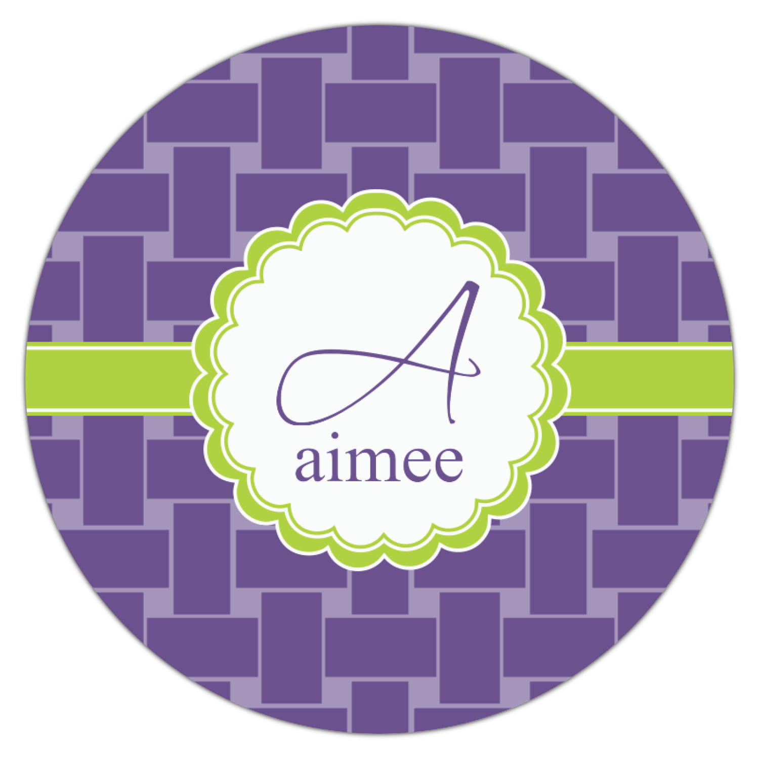 The rigidity of the weave is playfully contrasted with the scalloped center label, the perfect place for the personalization of your choice.