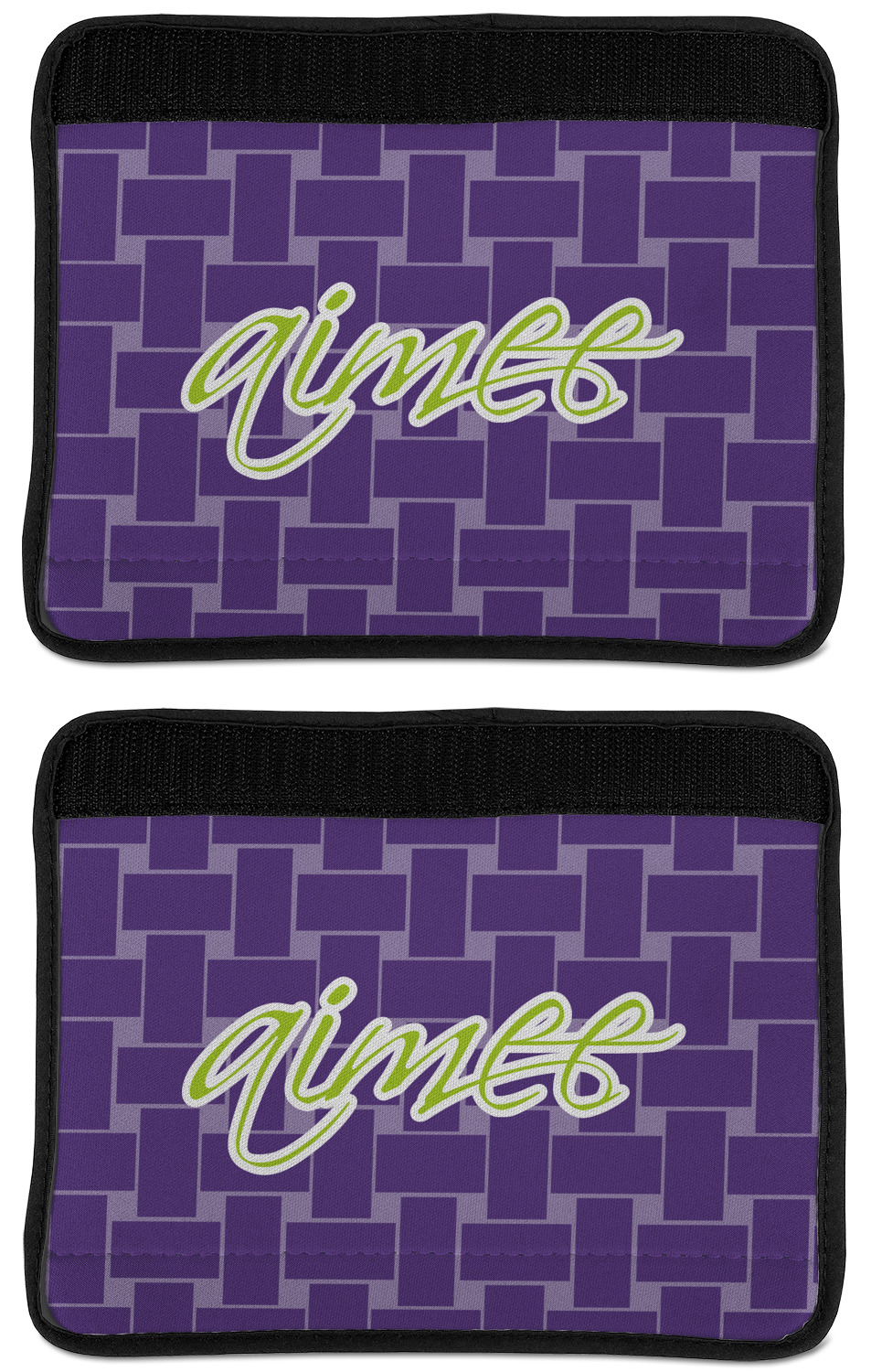 Made from neoprene, our seat belt strap covers wrap around the belt itself and have a Velcro tab for easy attachment and closure. The belt's edges are trimmed with a black polyester for a secure finish. Each cover is 9.5 by 7 inches when open and 9.5 by 2.5 inches when closed. We print your personalized design on the face of the seat belt pad.