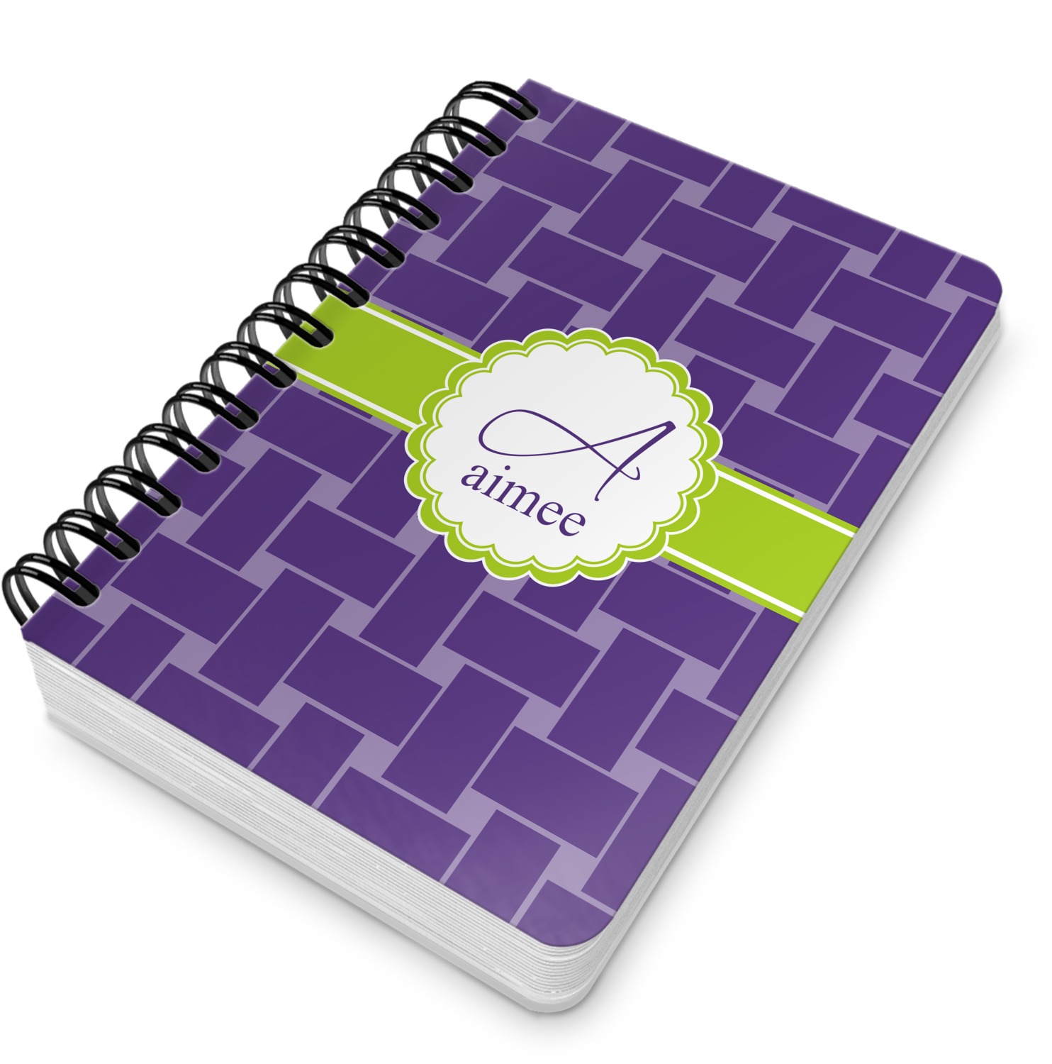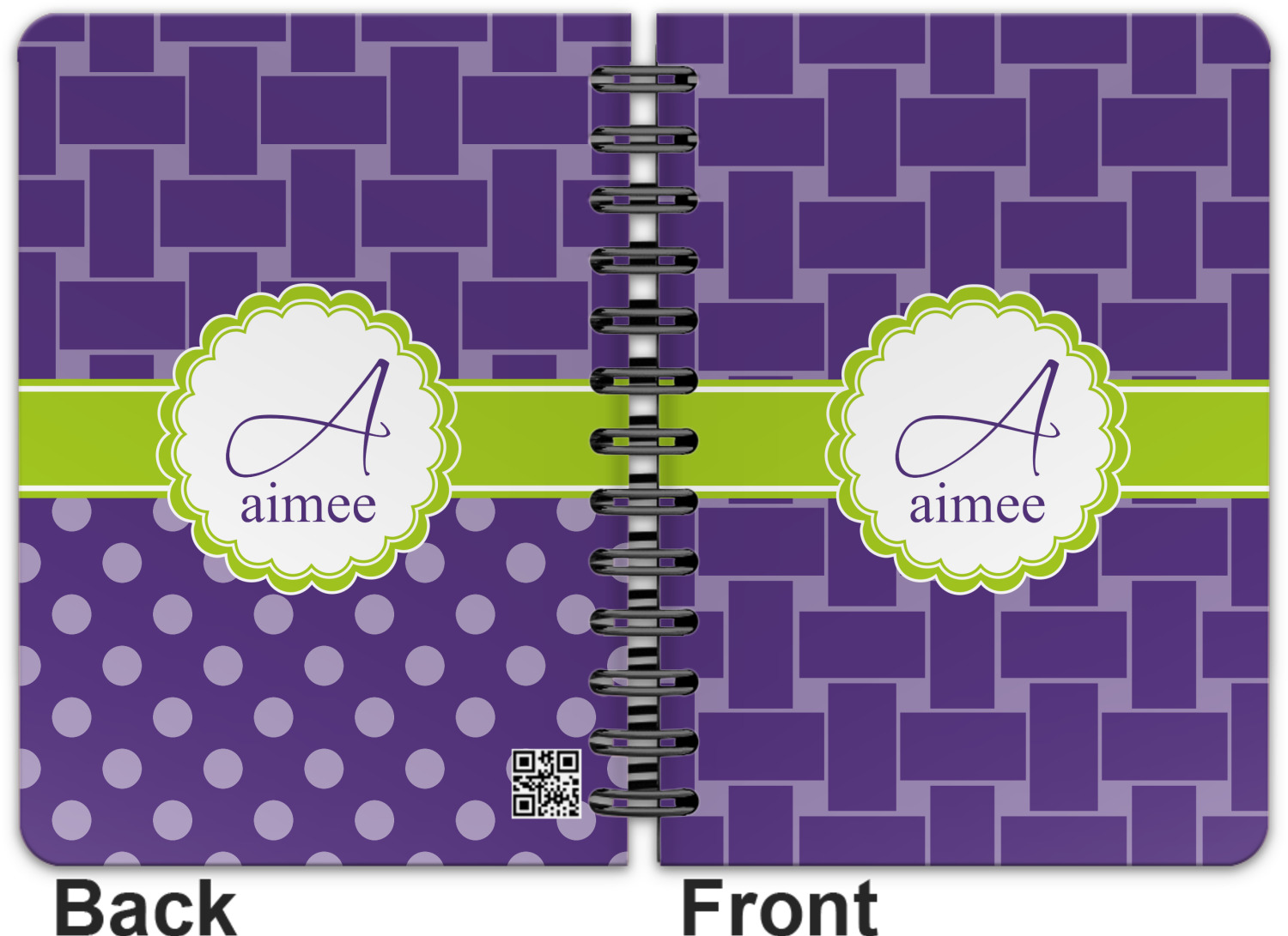 This spiral notebook includes 75 sheets of thick, ruled paper. The front and back of this custom notebook is made of a robust, laminate, plastic covering. We print your personalization on these two panels, underneath a glossy finish, which emphasizes the colors of your design. The two panels and the sheets of paper are held together by a sturdy, black coil. The paper within your bound notebook is perforated for easy, clean tearing.